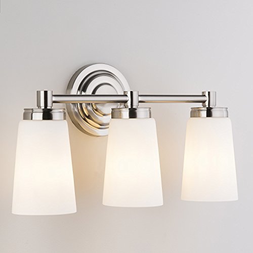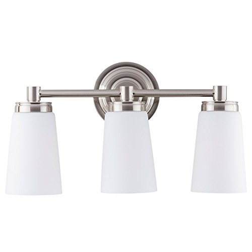 Sheffield Vanity Wall Sconce Three-Light Fixture Brushed Nickel with Frosted Glass Shade. Hardwired, UL Listed Linea di Liara LL-WL260-3-BN