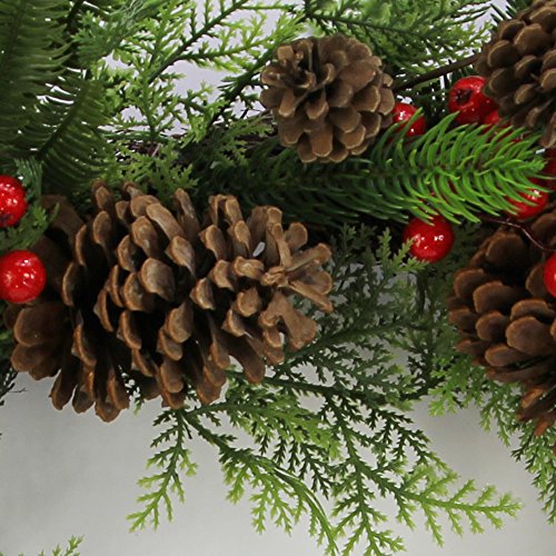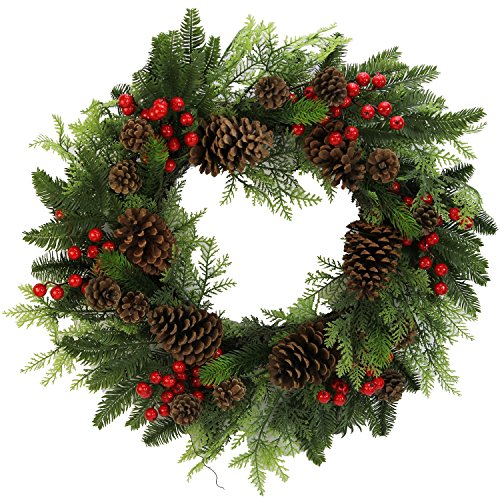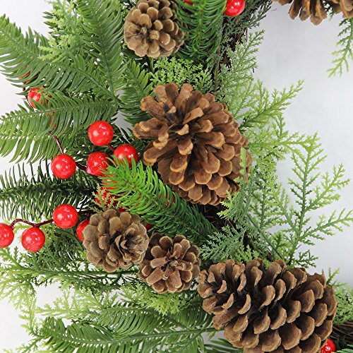 Admired By Nature Faux Red Berries Pine Cones & Cedar Christmas Wreath, 24", Natural