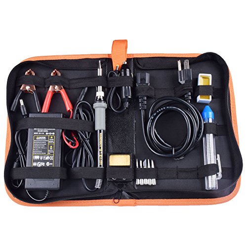 Soldering Iron, Soldering Iron Kit, 35W Adjustable Temperature Welding Tool, 5pcs Solder Soldering Iron Tip, with Car Battery Charger, AC/DC Adapter 110-240V/12V 3A, PU Carry Bag