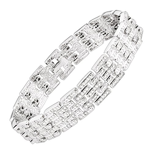 Let this link bracelet put you on the path to great style! Round-cut diamonds, totaling 1 ct, dot the face of this folding-clasp bracelet, all crafted in rhodium-plated brass. Piece measures 7 1/4 by 7/16 inches.Feature