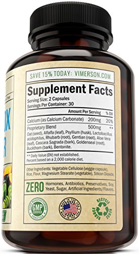 -. Binding : Health and Beauty -. Brand : Vimerson Health -. Department : unisex-adult -. Feature : ★ SATISFACTION GUARANTEED: Feel great and detoxed or your money back! / ★ OPTIMAL STOMACH HEALTH - This cleanse contains a mix of natural laxatives and herbs to help promote beneficial bacteria in your intestinal tract, so you feel lighter and less bloated. / ★ ENHANCES OVERALL HEALTH - This natural supplement features Goldenseal Root, which may help promote more effective, efficient internal organ function. With its increased absorption of vitamins, minerals, and nutrients, you'll get a hearty energy boost and better mood. / ★ PROMOTES WEIGHT LOSS - The Colon Detox & Cleanser may help you lose weight naturally by removing harmful toxins from the body and encouraging regular bowel movement. It prevents constipation and irritation. / ★ SAFE, GENTLE INGREDIENTS - Vimerson Health's Colon Detox Cleanse is formulated with only the safest and most gentle ingredients. It is 100% all natural with no hormones, antibiotics, or preservatives, and is soy-free, yeast-free, sugar-free, GMO-free, gluten-free, and dairy-free. -. IsAdultProduct : 0 -. Label : Vimerson Health -. LegalDisclaimer : These Statements have not been evaluated by the Food and Drug Administration. This product is not intended to diagnose, treat, cure or prevent any disease. -. Manufacturer : Vimerson Health -. MPN : Colon Sweep 60caps -. PackageQuantity : 1 -. PartNumber : Colon Sweep 60caps -. ProductGroup : Health and Beauty -. ProductTypeName : HEALTH_PERSONAL_CARE -. Publisher : Vimerson Health -. Studio : Vimerson Health -. Title : Colon Detox Cleanse & Weight Loss Supplement - 100% All Natural, Non-Gmo, Gluten Free. Works for Men & Women. Gentle, Safe & Effective Cleanser to Lose Weight & Flush Toxins