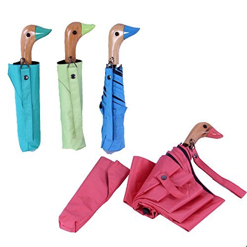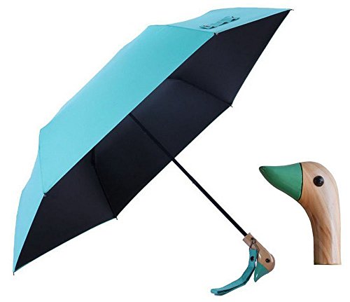-. Title : Duck Head Wood Handle Umbrella,UV 50+ Shade Rain Shine Folding Travel Umbrella