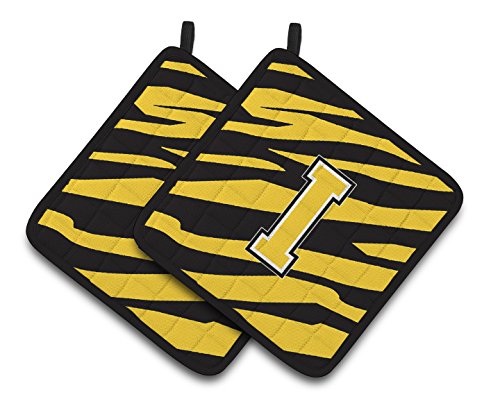Caroline's Treasures Monogram Initial I Tiger Stripe - black Gold Pair of Pot Holders CJ1026-IPTHD, 7.5HX7.5W, Multicolor
