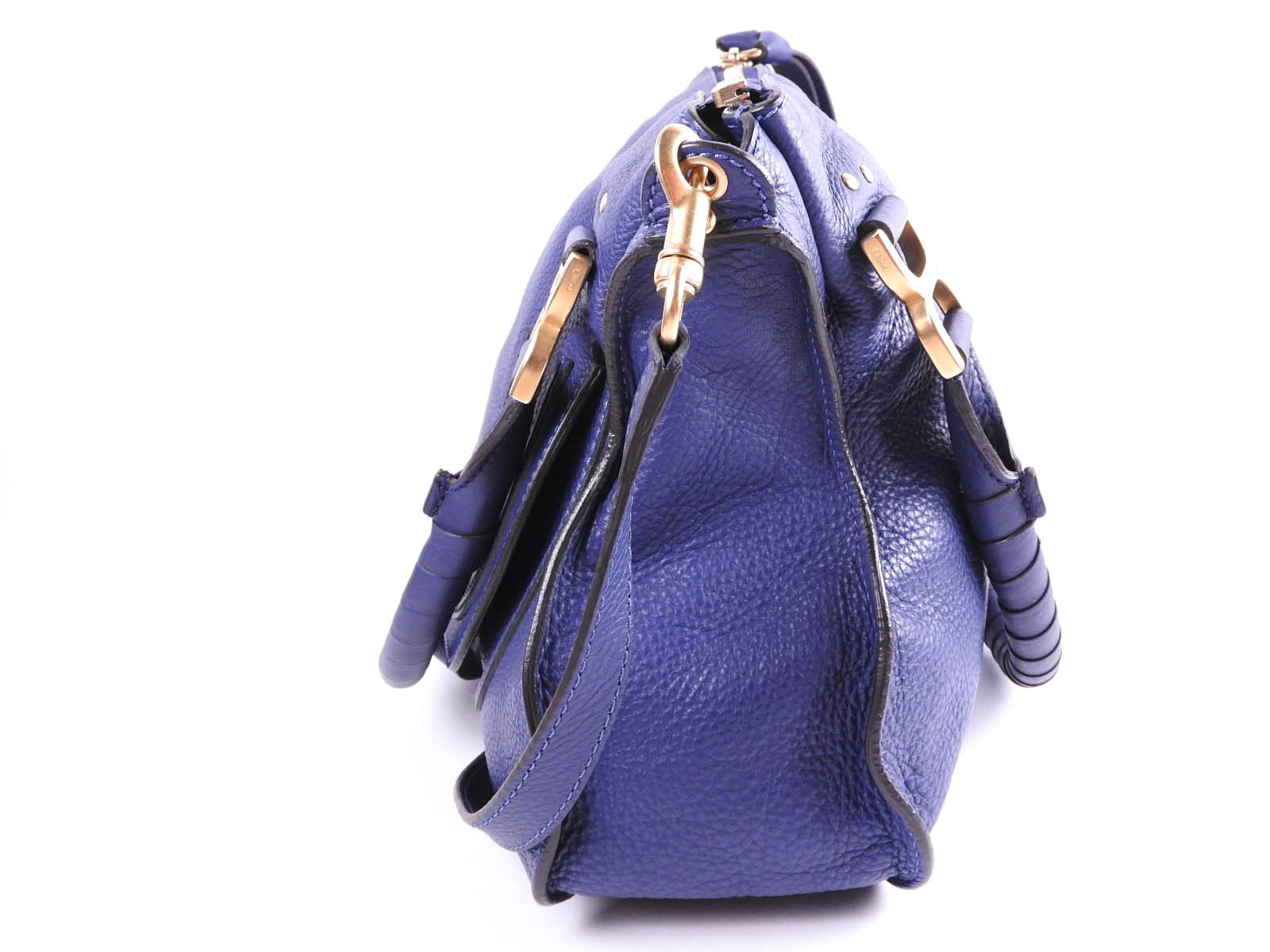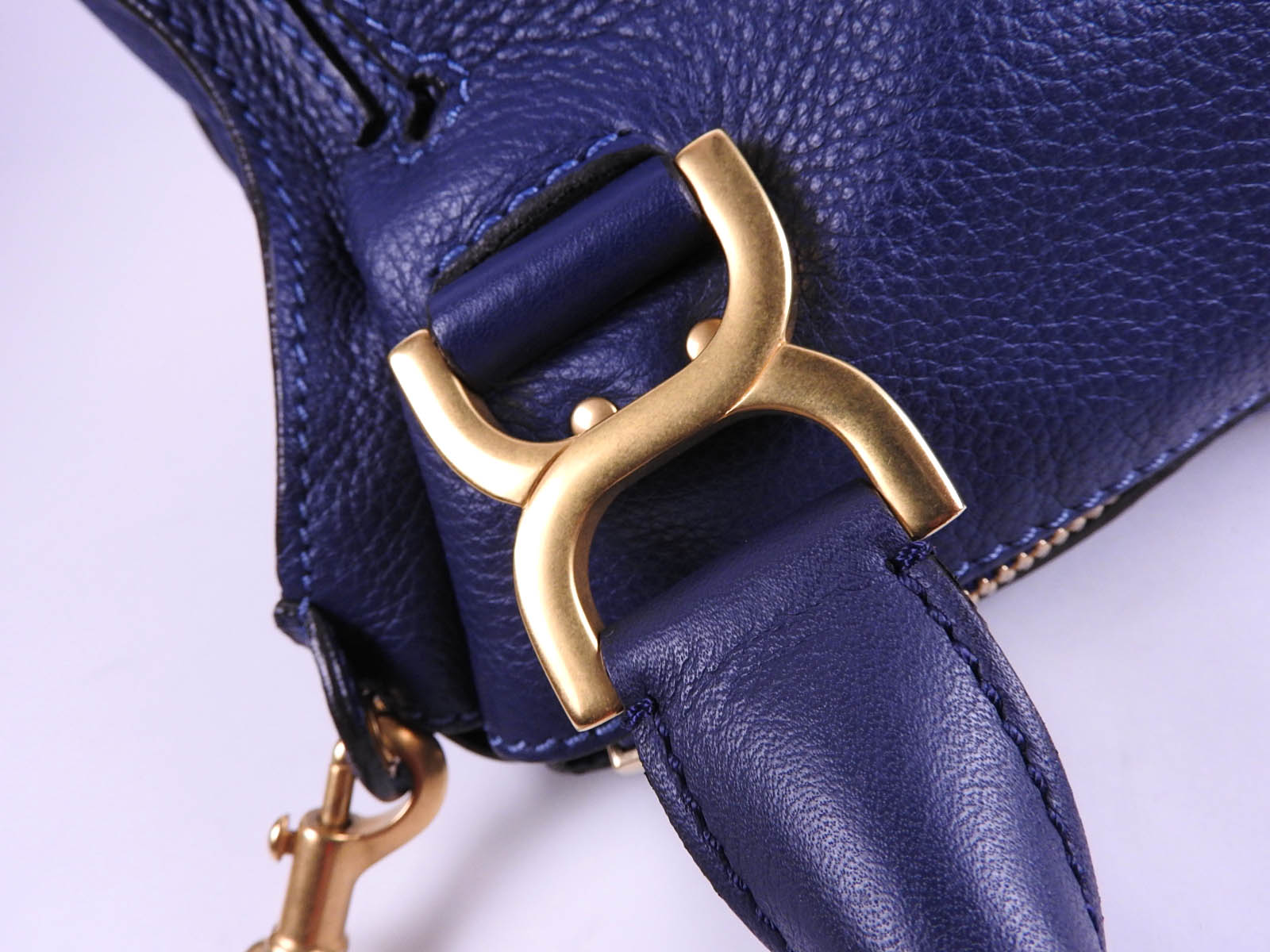 Auth CHLOE Marcie 2way Shoulder Bag Hand Bag Leather Royal Blue Gold 3S0860 A-6965