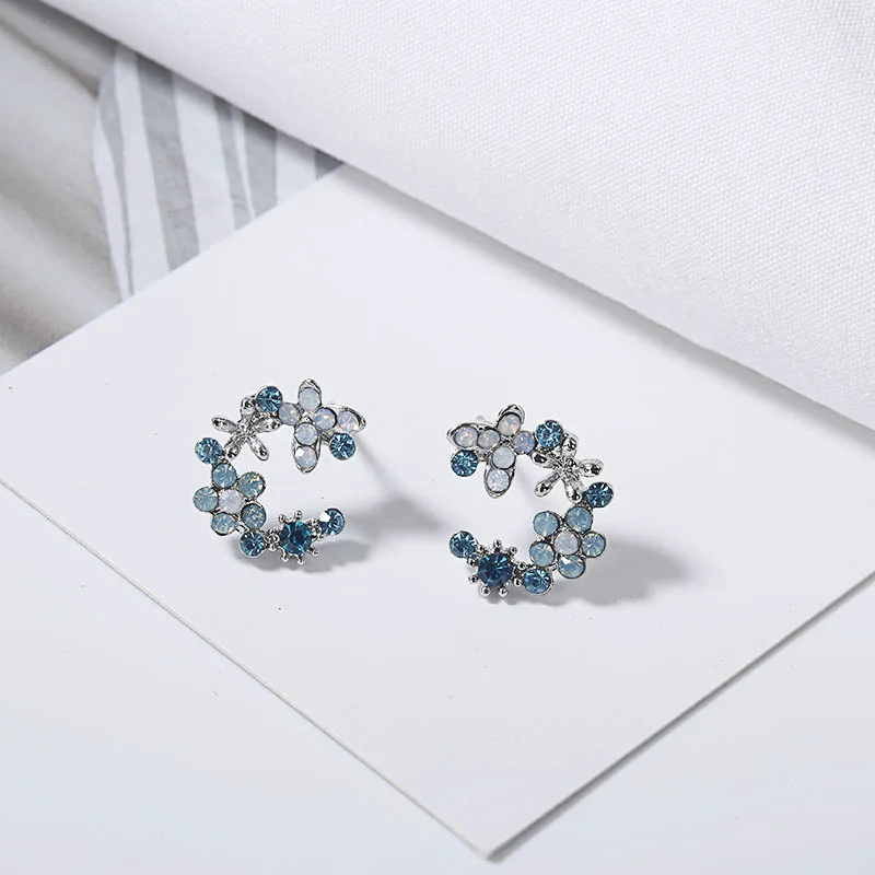 Fashion Earrings:Colorful Crystal Flower Stud Earrings for Women