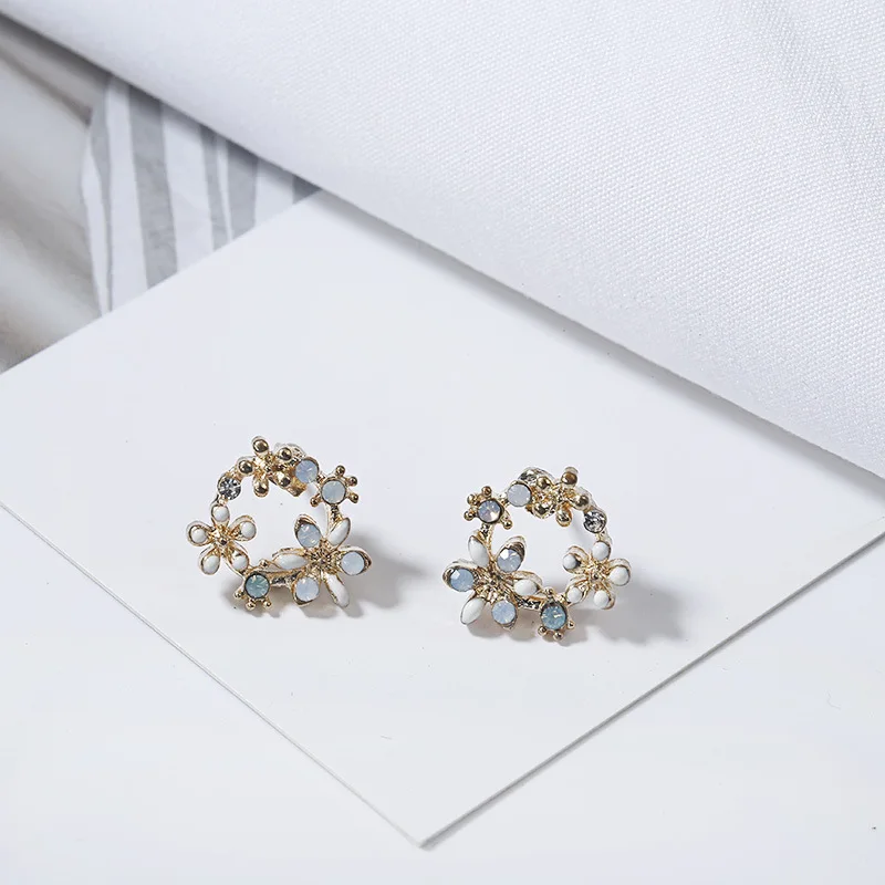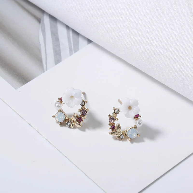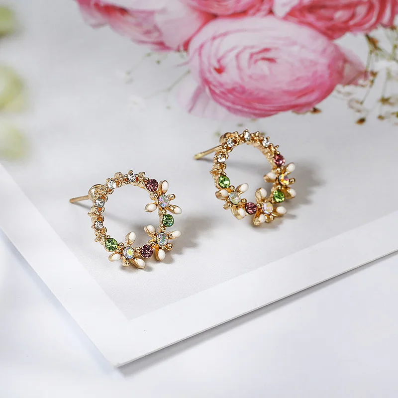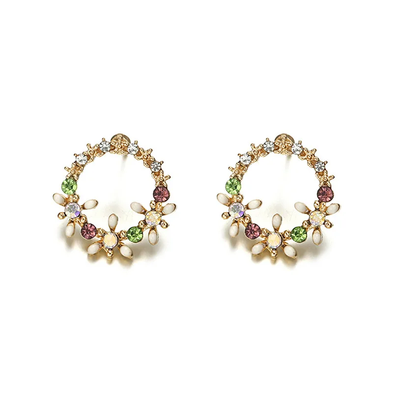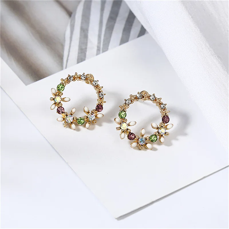 Item:Cute Romantic Colorful Rhinestone Flower Stud Earrings for Women