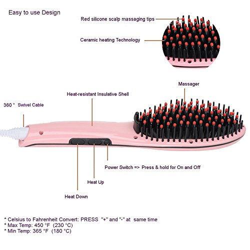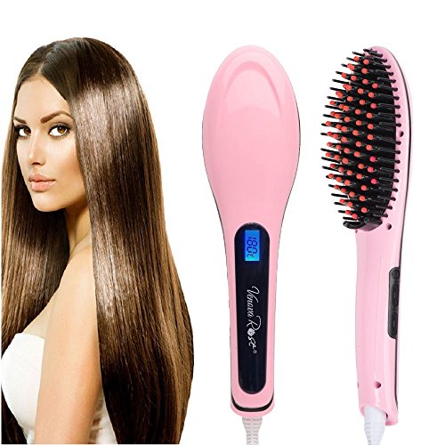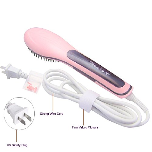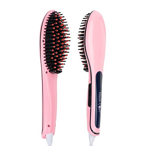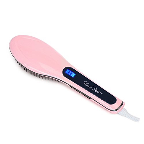 VENOVA ROSE Ceramic Hair Straightening Brush - Anti Static & Anti Scald - 3 in 1 Straightener, Detangling and Styling for Professional Results (Pink)