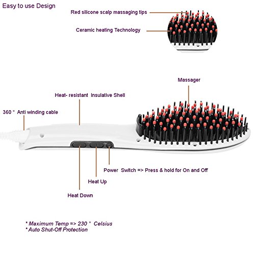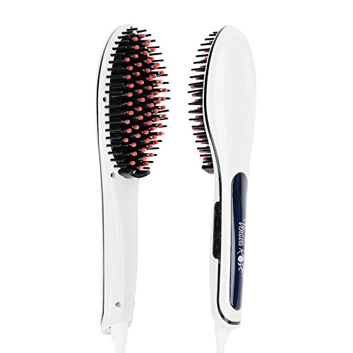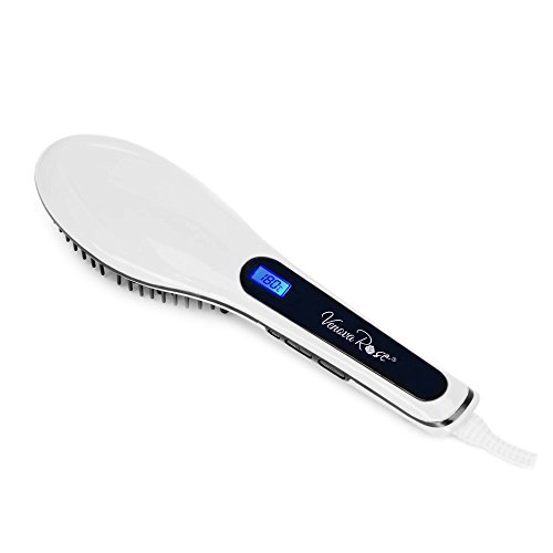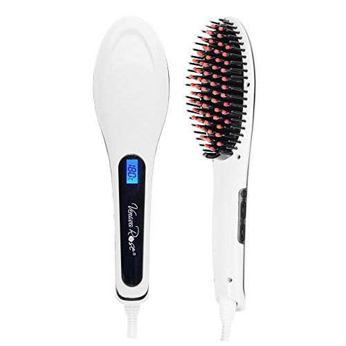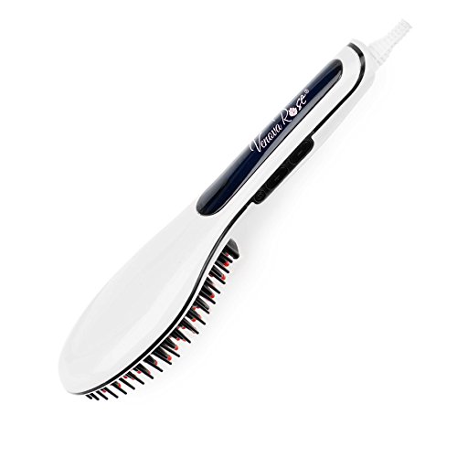 VENOVA ROSE Ceramic Hair Straightener Brush - Anti Static & Anti Scald - 3 in 1 Straightening, Detangling and Styling for Professional Results (White)