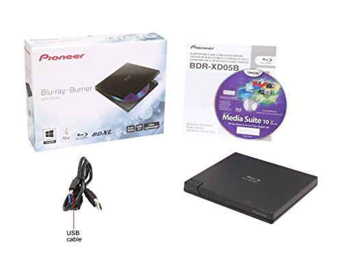 Pioneer BDR-XD05B 6x Slim Portable USB 3.0 Blu-Ray Burner (Black) - Supports BDXL/BD/DVD/CD - Bonus CyberLink Media Suite 10 Windows Software & Microfiber Disc Cleaning Cloth