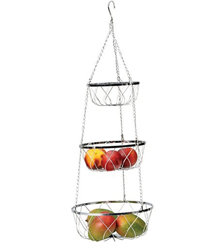 RSVP 3-Tier Hanging Fancy Chrome Wire Fruit Basket