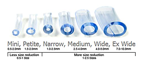 -. Feature : Available in 6 sizes to accomdate the width of your ring. / Easy to use (no tools needed for this ring size reducer) / Can easily be cut shorter for less size reduction. / Comfortable do to curved shape and hypoallergenic (medical grade vinyl) / Kind to your ring! (does not scratch gold or silver) Costs far less than a full ring sizing