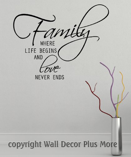 Wall Décor Plus More WDPM2337 Family Where Life Begins and Love Never Ends Wall Sticker Vinyl Decal Quote, 23-Inch x 18-Inch, Chocolate Brown