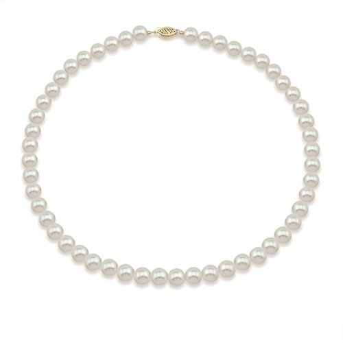 14K Yellow Gold 6.5-7.0mm White Freshwater Cultured Pearl Necklace, 20" Length - AAA Quality