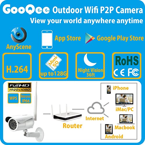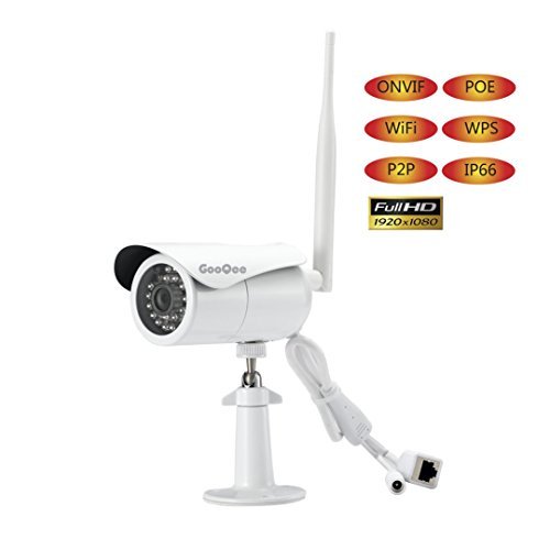 GooQee Outdoor Wifi Network Camera 1080P Waterproof - 2.4G Wireless IP P2P Security DVR with WPS POE Motion Detection and 36ft Night Vision - Support Max 128Gb Micro SD Card (NC006PW)