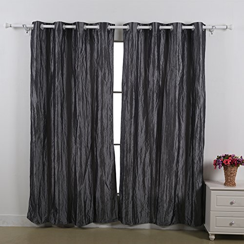 Deconovo® Faux Silk Crinkled Taffeta Grommet Window Curtain Panels For Bedroom 52"x95", Dark Grey