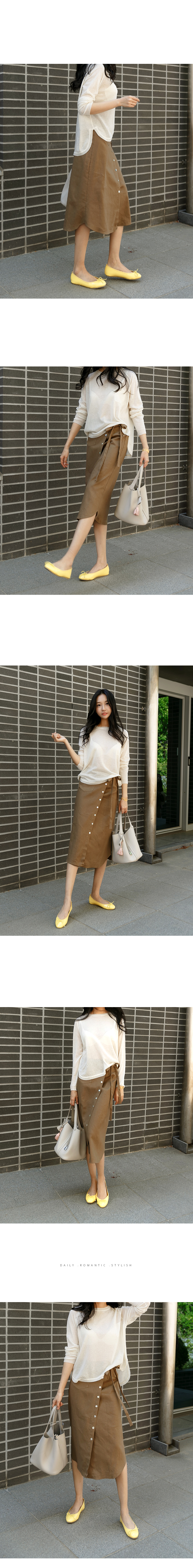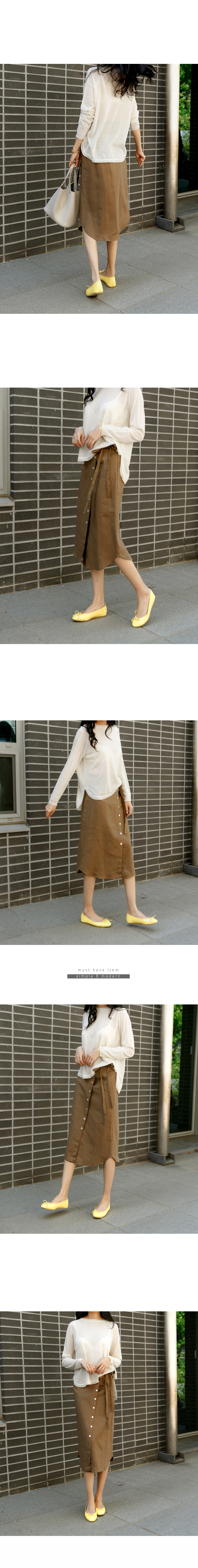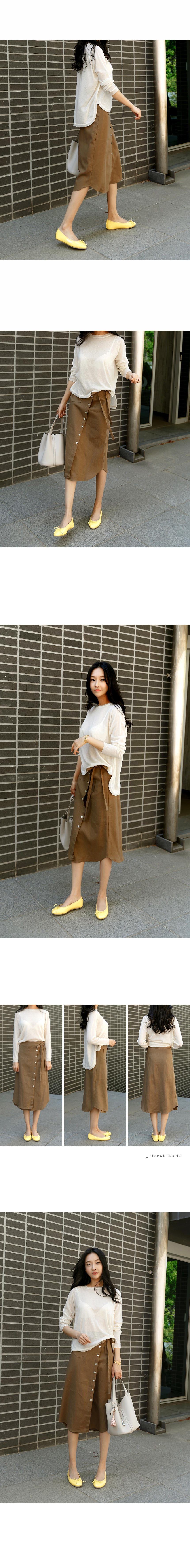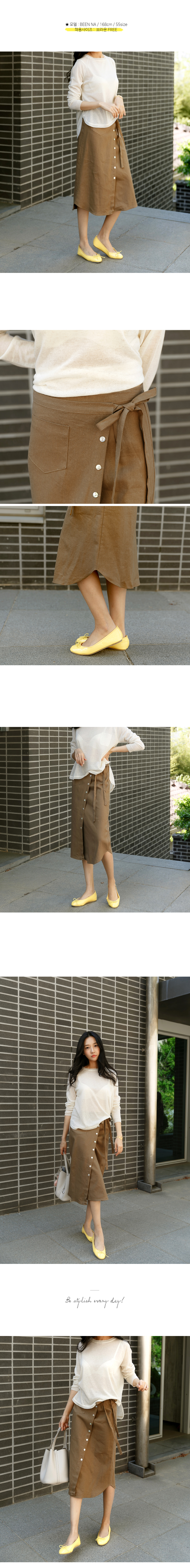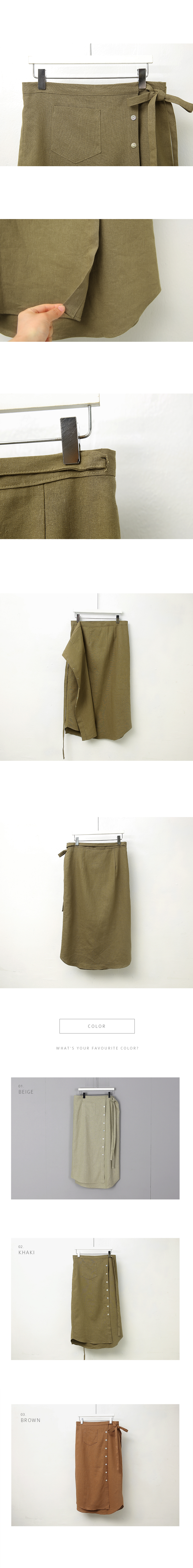 버튼 디테일의 린넨 랩 스커트