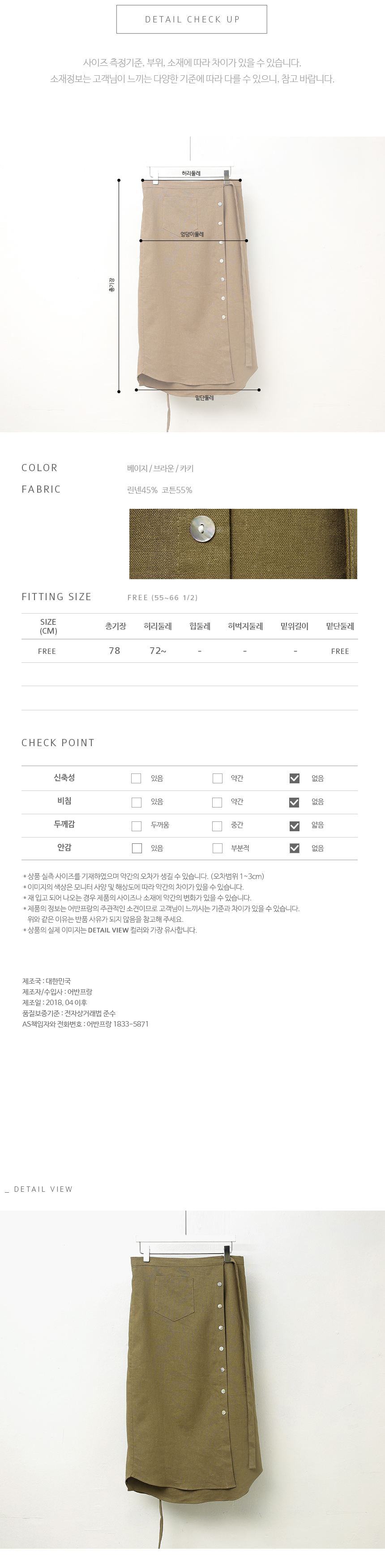 단정한 느낌의 린넨 랩 스커트에요