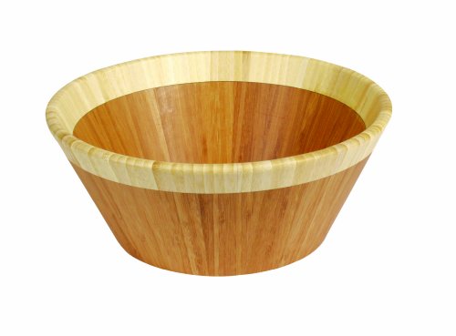 Island Bamboo 12-Inch Round Salad Bowl, Brown with White Rim