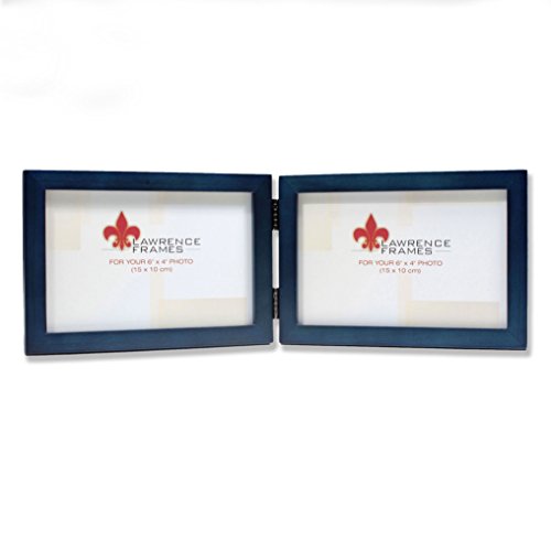 Lawrence Frames Hinged Double (Horizontal) Blue Wood Picture Frame, Gallery Collection, 4 by 6-Inch