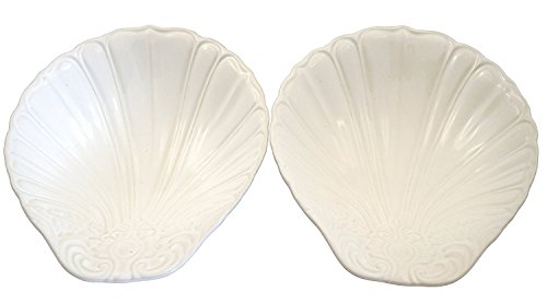 Loneoak Porcelain Fruit Bowl / snack bowl 2pc set - 29oz each. 10x8x2.8 inch shell pattern USA (White)