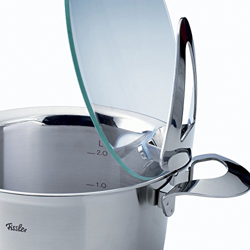 -. Feature : Premium quality, award-winning German cookware line with sophisticated style and compelling functional features all backed by the trusted Fissler name / Solea features extra-large, stay-cool handles that are comfortable and easy to use / Features a rimless glass lid that can not only be hooked anywhere on the rim of the pot, the glass allows you to see the cooking process, eliminating the need to remove the lid, releasing precious heat / Conical pot designs perfect for stacking like-sized pots for a space-saving function / Each piece of Solea cookware features the CookStar all-stove base that heats quickly and easily, saving energy; guaranteed never to warp of develop hotspots