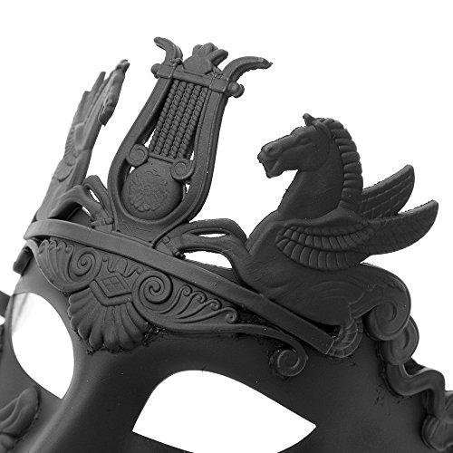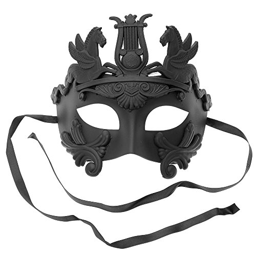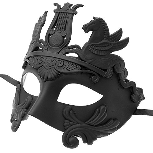 -. Brand : L.M.K -. Color : Silver -. Department : unisex-adults -. Feature : Beautiful Mysterious, intrigue, Unique Venetian Masquerade Mask / High Quality mask Detailed with intricate modern Venetian inspired designs / Mask is carefully hand-made with the finest quality and eco-friendly materials / Perfect for Masquerade, Mardi Gras, Wedding, Prom, Fashion Shows and Costume Party / Created with very light-weight quality materials for long hours of comfortable wear -. ProductGroup : Apparel -. ProductTypeName : ADULT_COSTUME -. Size : One-Size -. Title : Roman Greek Emperor with Pegasus Horses Venetian Mask - Black -. UPC : 700686462030