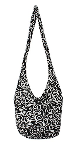 -. Title : Slouchy Boho Bag, Black & White, Crossbody Strap