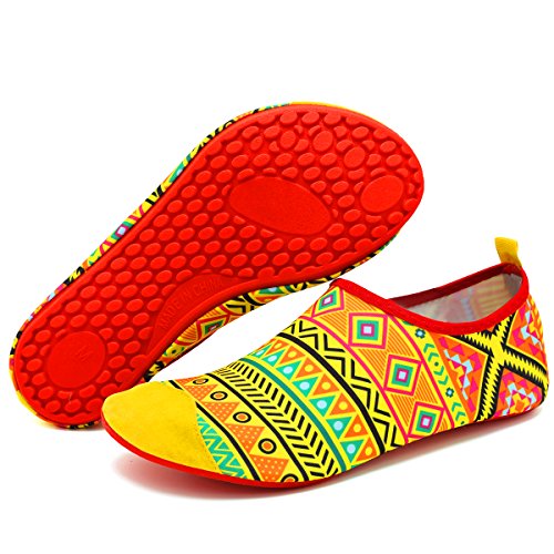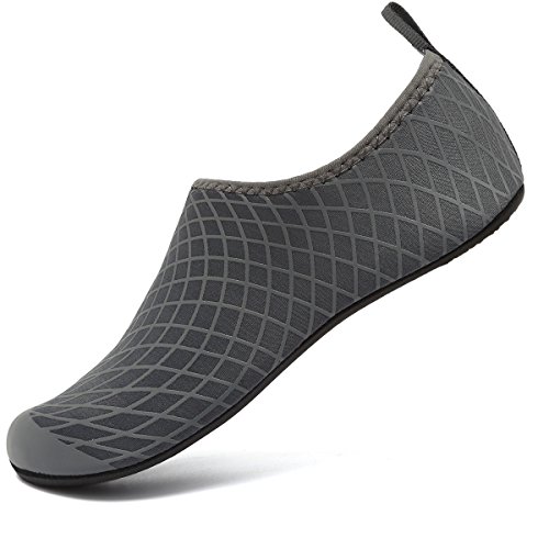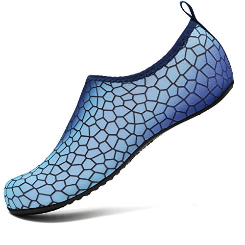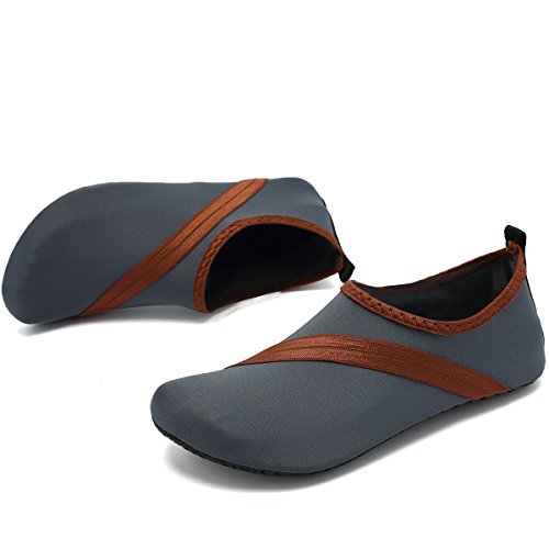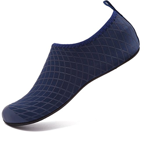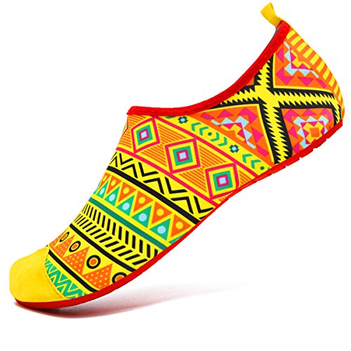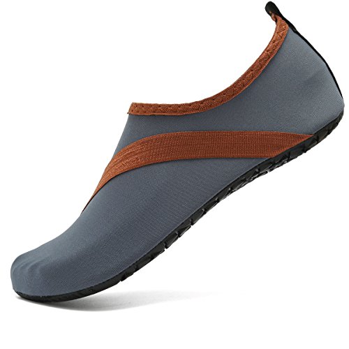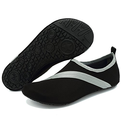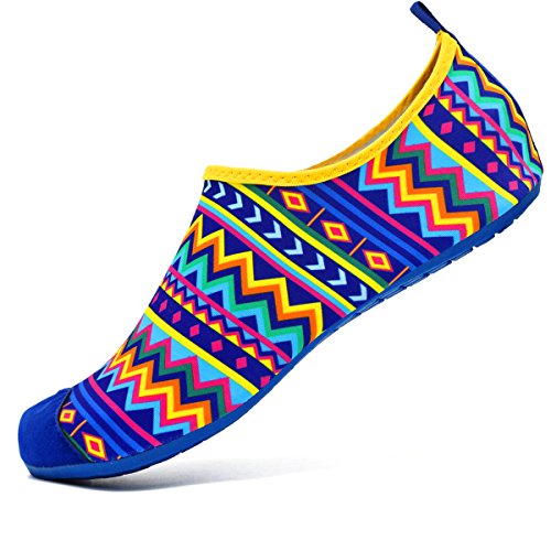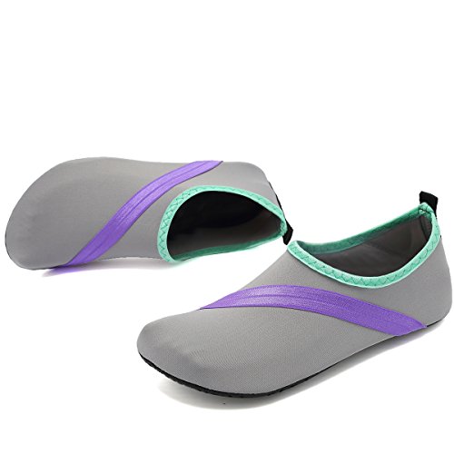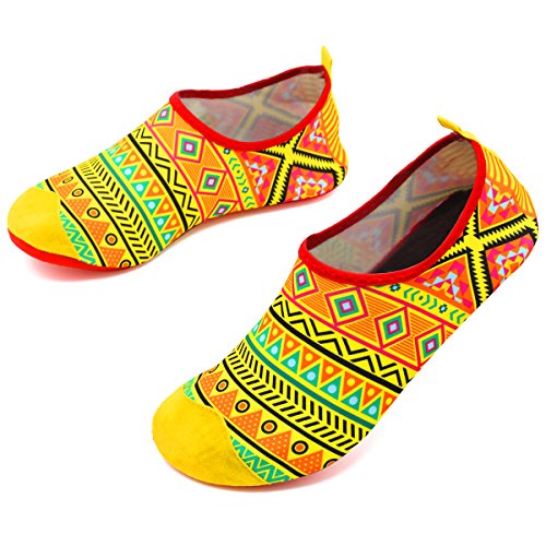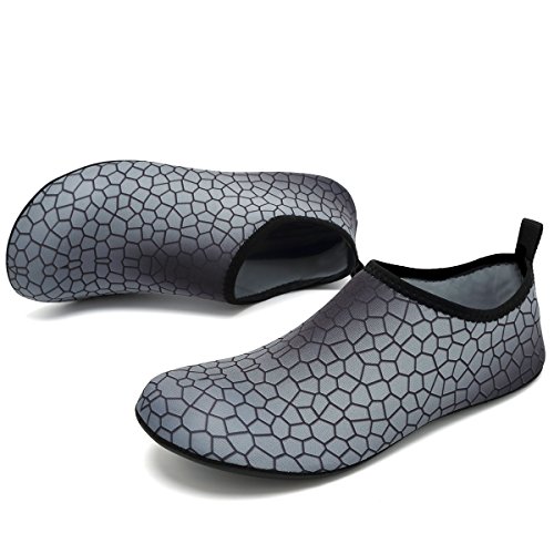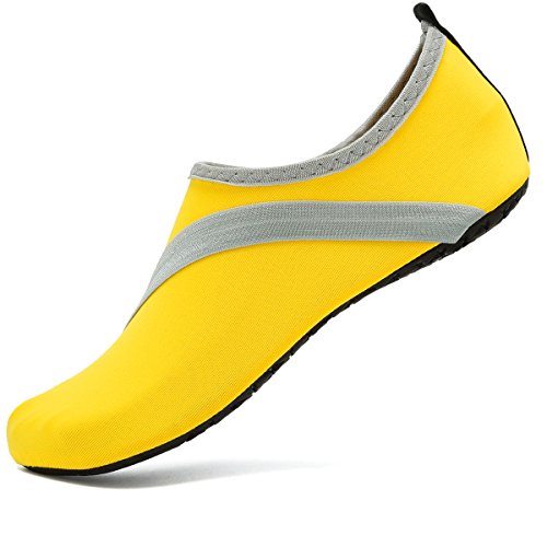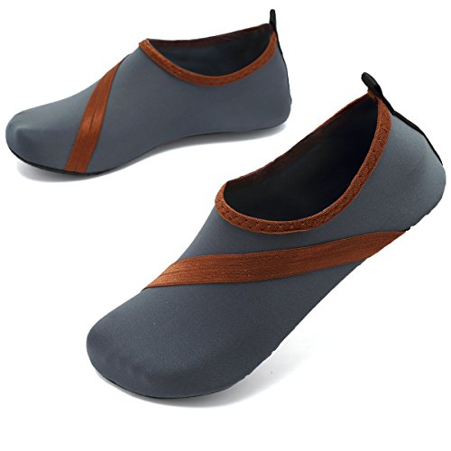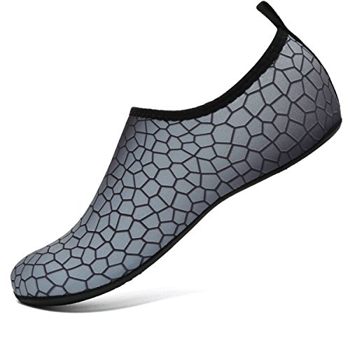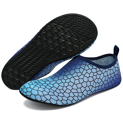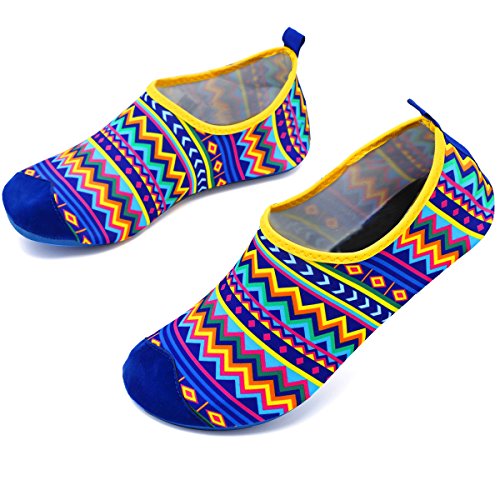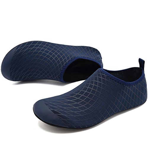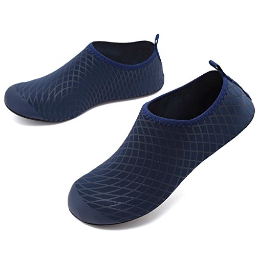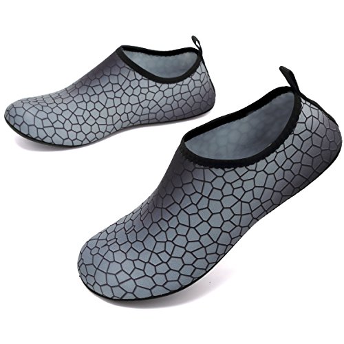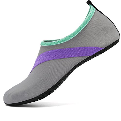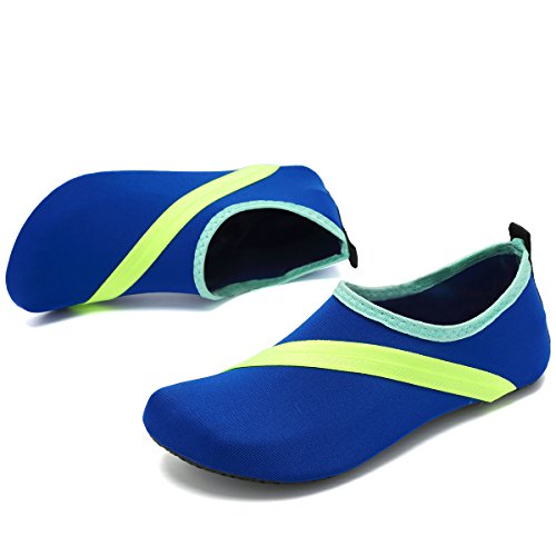 Binding : Apparel Product Description VIFUUR Unisex Quick Drying Aqua Water Shoes Pool Beach Yoga Exercise Shoes for Men Women Size Chart US Women 3.5-4 = UK Women 2-2.5 = Foot Length 8.03in = EU 34-35 US Women 5.5-6.5/Men 5-5.5M = UK Women 3.5-4.5/Men 3-4 = Foot Length 8.46in = EU 36-37 US Women 7.5-8.5/Men 6-7 = UK Women 5.5-6.5/Men 5-6 = Foot Length 9.17in = EU 38-39 US Women 9.5-10.5/Men 7.5-8.5 = UK Women 7.5-8.5/Men 7-7.5 = Foot Length 9.69in = EU 40-41 US Women 11-12/Men 9.5-10.5 = UK Women 9-9.5/Men 8-8.5 = Foot Length 10.20in = EU 42-43 US Women 12.5-13/Men 11-11.5 = UK Women 9.5-10.5/Men 9.5-10.5 = Foot Length 10.71in = EU 44-45 US Women 13.5/Men 12 = UK Women 11/Men 11.5 = Foot Length 11.3in = EU 46 Product information: Gender: Women,Men(Unisex) · Material:elastic fabric · Sole Material:rubber · Style: Fashion · Item Type:Shoes,socks · Feature: Breathable,Massage,Lightweight · Appropriate Season: Spring,Summer,Autumn · Occasion:Indooroutdoor,Yoga Exercise,Beach,Pool,Surfing,Water Sports,Gym,Walking Why Choose Our Water Shoes? 1.Upgraded Anti-skid Rubber Sole The soft outsole is made from elastic thermoplastic rubber, which enhancing skid resistance and protecting you from slipping. 2.Stretchy Upper New fashion water shoes are breathable, smooth fabrics and sweat-absorption, it is comfortable, quick-dry. 3.360°Twist and Bend The whole water shoes are soft, elastic and can be bent as a small piece, which is easy to carry. VIFUUR Unisex Quick Drying Aqua Water Shoes Pool Beach Yoga Exercise Shoes for Men Women VIFUUR Skin Aqua Shoes Yoga Exercise Socks come with a wide range of styles and color for you to pick out for family day. 0