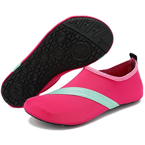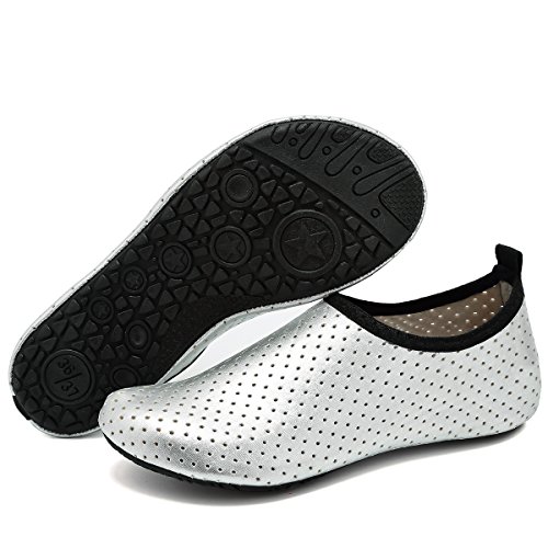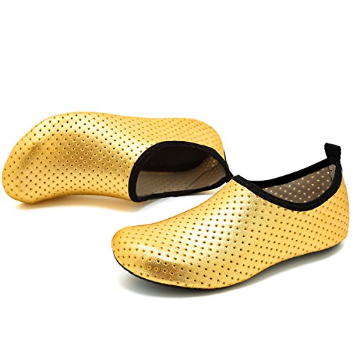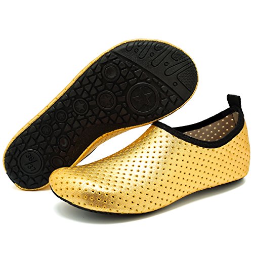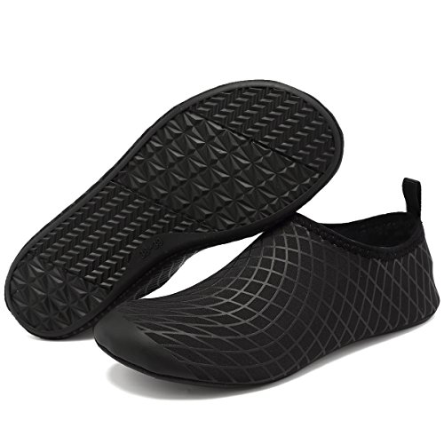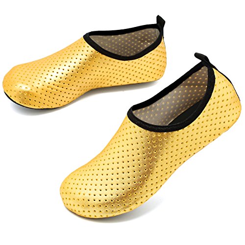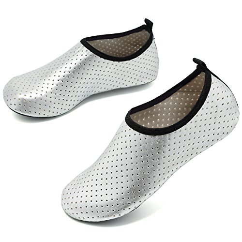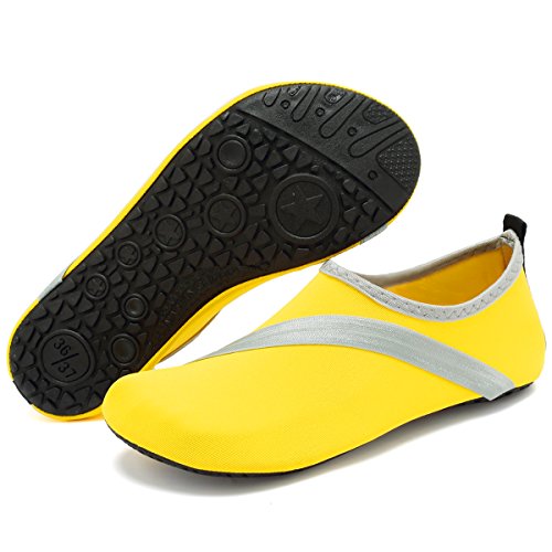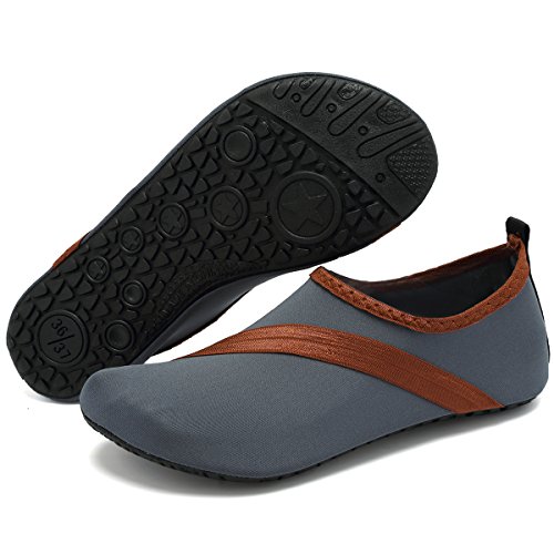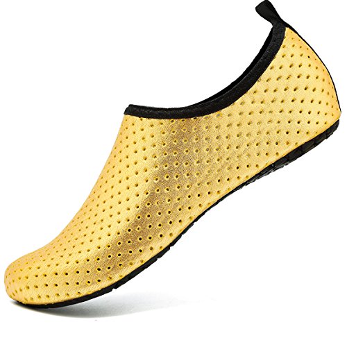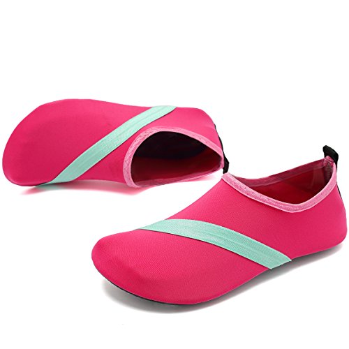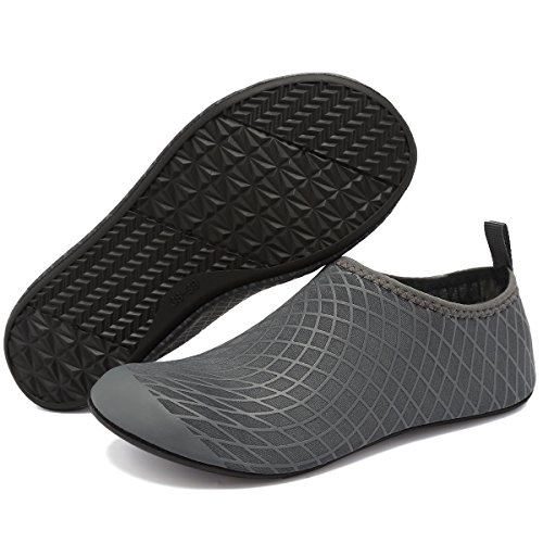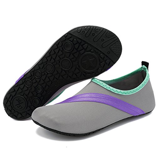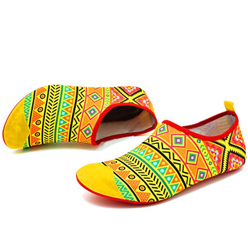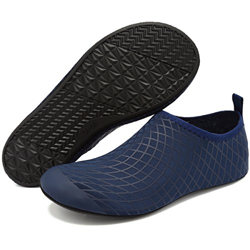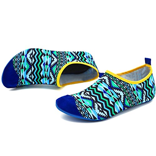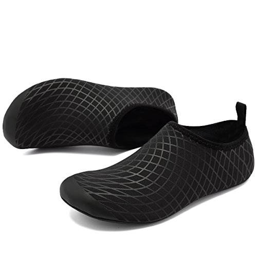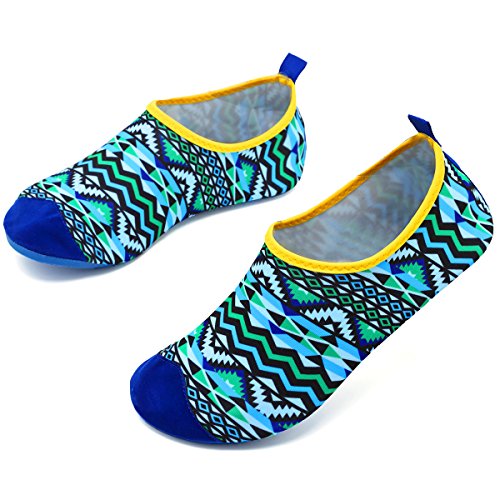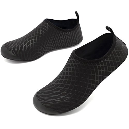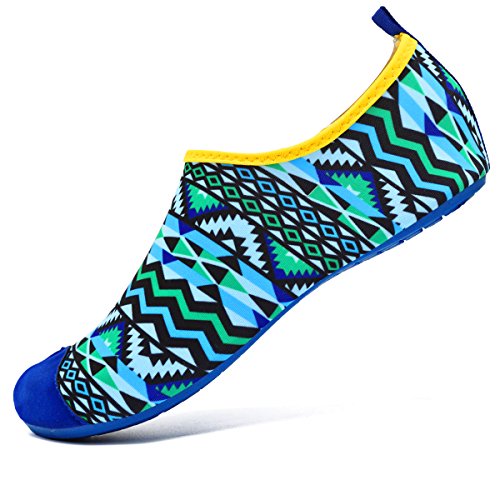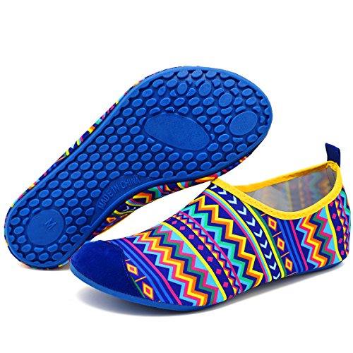 Binding : Apparel Product Description VIFUUR Unisex Quick Drying Aqua Water Shoes Pool Beach Yoga Exercise Shoes for Men Women Size Chart US Women 3.5-4 = UK Women 2-2.5 = Foot Length 8.03in = EU 34-35 US Women 5.5-6.5/Men 5-5.5M = UK Women 3.5-4.5/Men 3-4 = Foot Length 8.46in = EU 36-37 US Women 7.5-8.5/Men 6-7 = UK Women 5.5-6.5/Men 5-6 = Foot Length 9.17in = EU 38-39 US Women 9.5-10.5/Men 7.5-8.5 = UK Women 7.5-8.5/Men 7-7.5 = Foot Length 9.69in = EU 40-41 US Women 11-12/Men 9.5-10.5 = UK Women 9-9.5/Men 8-8.5 = Foot Length 10.20in = EU 42-43 US Women 12.5-13/Men 11-11.5 = UK Women 9.5-10.5/Men 9.5-10.5 = Foot Length 10.71in = EU 44-45 US Women 13.5/Men 12 = UK Women 11/Men 11.5 = Foot Length 11.3in = EU 46 Product information: Gender: Women,Men(Unisex) · Material:elastic fabric · Sole Material:rubber · Style: Fashion · Item Type:Shoes,socks · Feature: Breathable,Massage,Lightweight · Appropriate Season: Spring,Summer,Autumn · Occasion:Indooroutdoor,Yoga Exercise,Beach,Pool,Surfing,Water Sports,Gym,Walking Why Choose Our Water Shoes? 1.Upgraded Anti-skid Rubber Sole The soft outsole is made from elastic thermoplastic rubber, which enhancing skid resistance and protecting you from slipping. 2.Stretchy Upper New fashion water shoes are breathable, smooth fabrics and sweat-absorption, it is comfortable, quick-dry. 3.360°Twist and Bend The whole water shoes are soft, elastic and can be bent as a small piece, which is easy to carry. VIFUUR Unisex Quick Drying Aqua Water Shoes Pool Beach Yoga Exercise Shoes for Men Women VIFUUR Skin Aqua Shoes Yoga Exercise Socks come with a wide range of styles and color for you to pick out for family day. 0