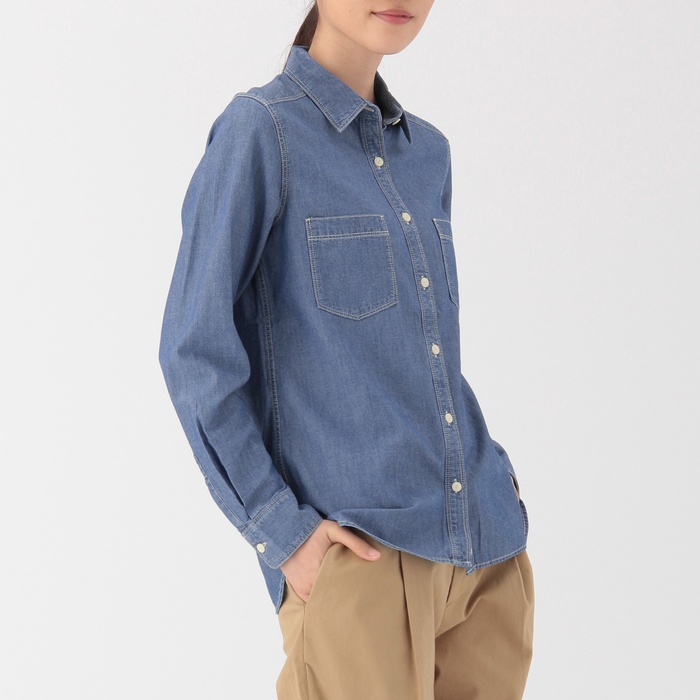 Muji 오거닉 코튼 샴브레 [chambray] 셔츠 부인S네이비SALE