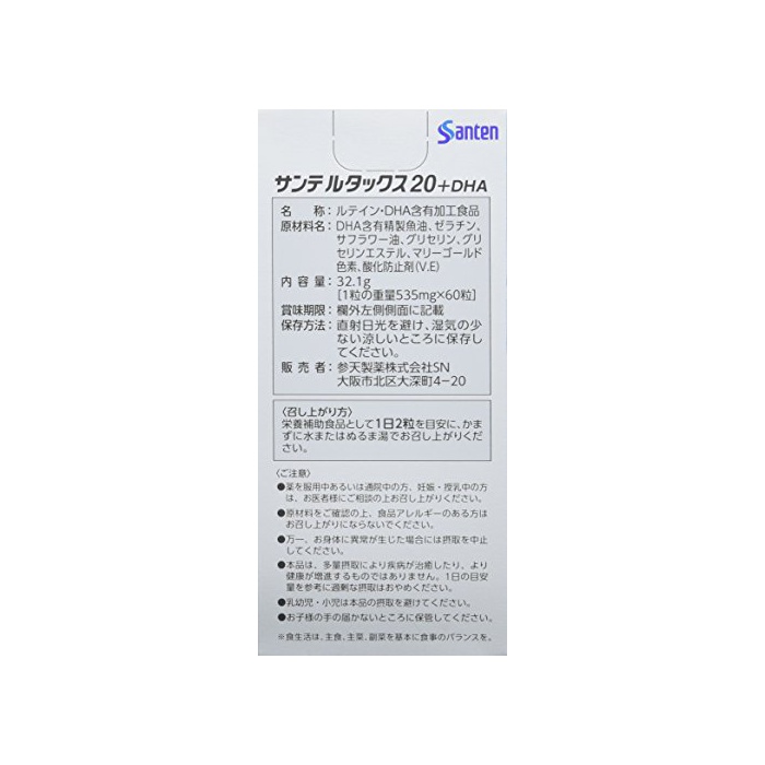 원본상품명: 【3個】サンテ ルタックス20+DHA 60粒×3個 (4987084530035)