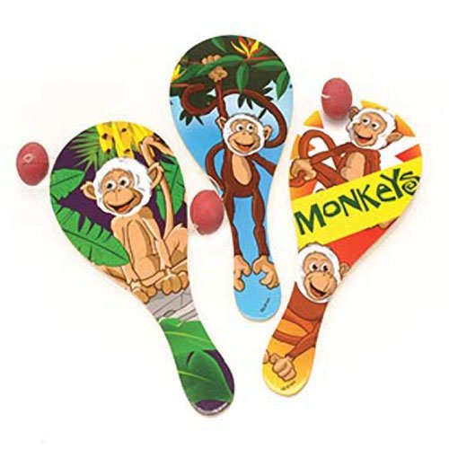 Studio : US Toy Publisher : US Toy Binding : Toy Product Description est your skill as you attempt to keep the ball bouncing with this monkey paddle ball. Monkey paddle balls are a fun addition to any party favor bag. Lot of 12- assorted monkey themes ship at random. 0