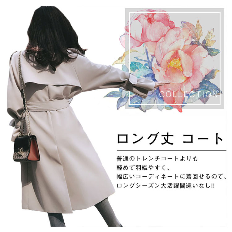 | 大人女子の春アウターといえばトレンチコート!デイリーに使いたくなること間違いなしの嬉しいアイテムです。ロングトレンチは大人のきちんと感とこなれたおしゃれ女子の魅力を引き出します。普通のトレンチコートよりも軽めで羽織やすく、幅広いコーディネートに着回せるので、ロングシーズン大活躍間違いなし!! | |