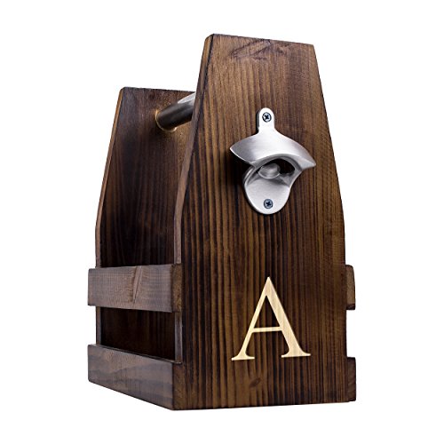 Cathy's Concepts Personalized Rustic Craft Beer Carrier with Bottle Opener, Letter A