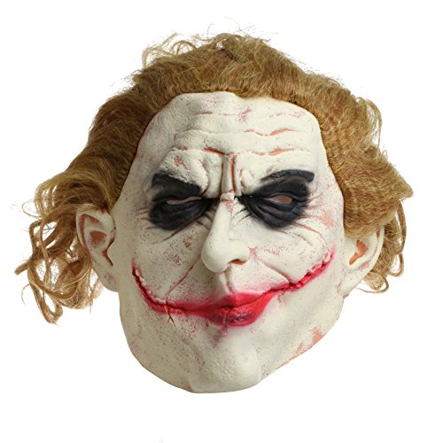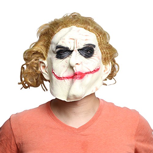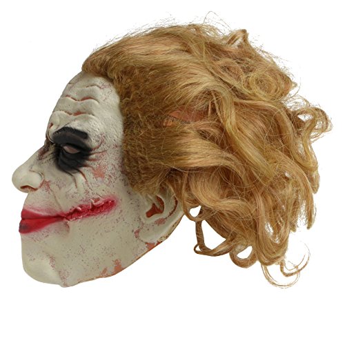 Joker Mask with Gold Long Hair, Latex Dark Knight Adult White Face Cosplay