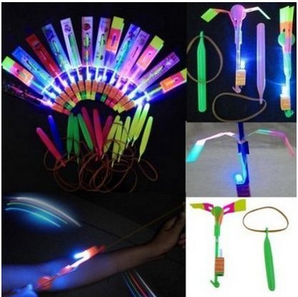 Happyi 25pcs Amazing Led Light Arrow Rocket Helicopter Flying Toy Party Fun Gift Elastic