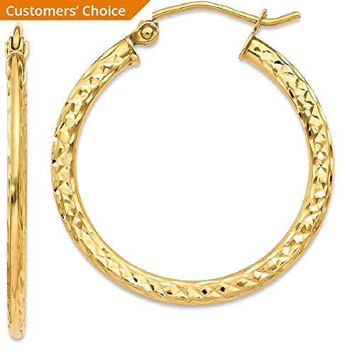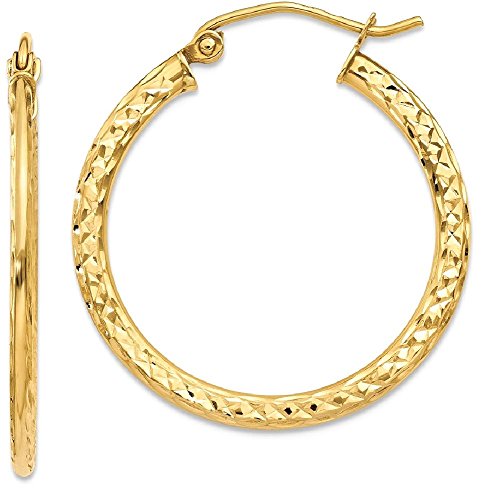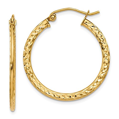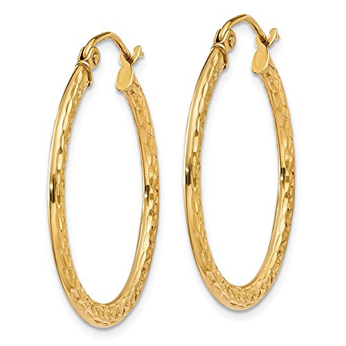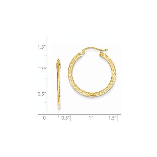 ICECARATS DESIGNER JEWELRY 14K YELLOW GOLD TEXTURED 1X2.2X25MM HOOP EARRINGS EAR HOOPS SET FOR WOMEN