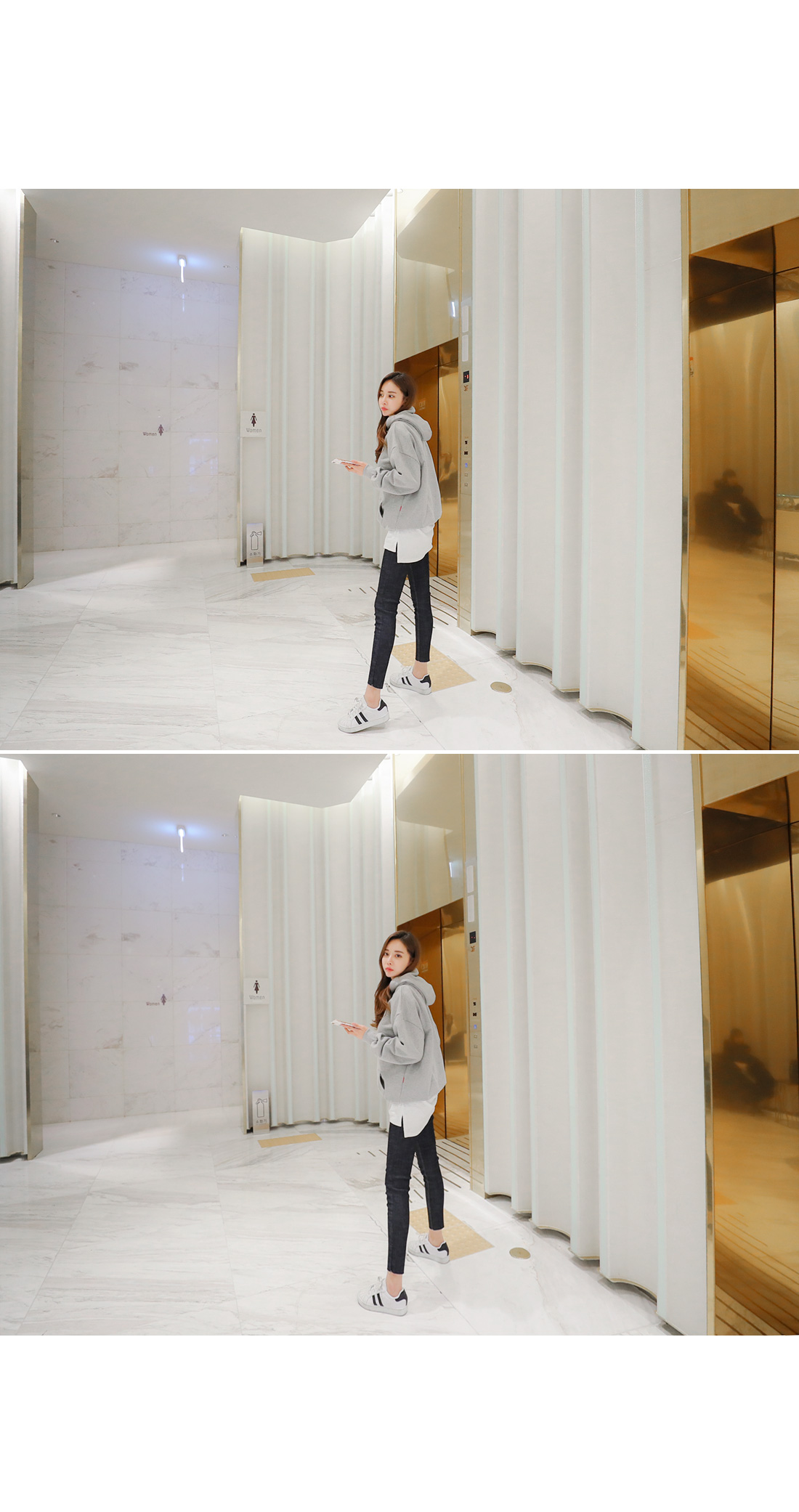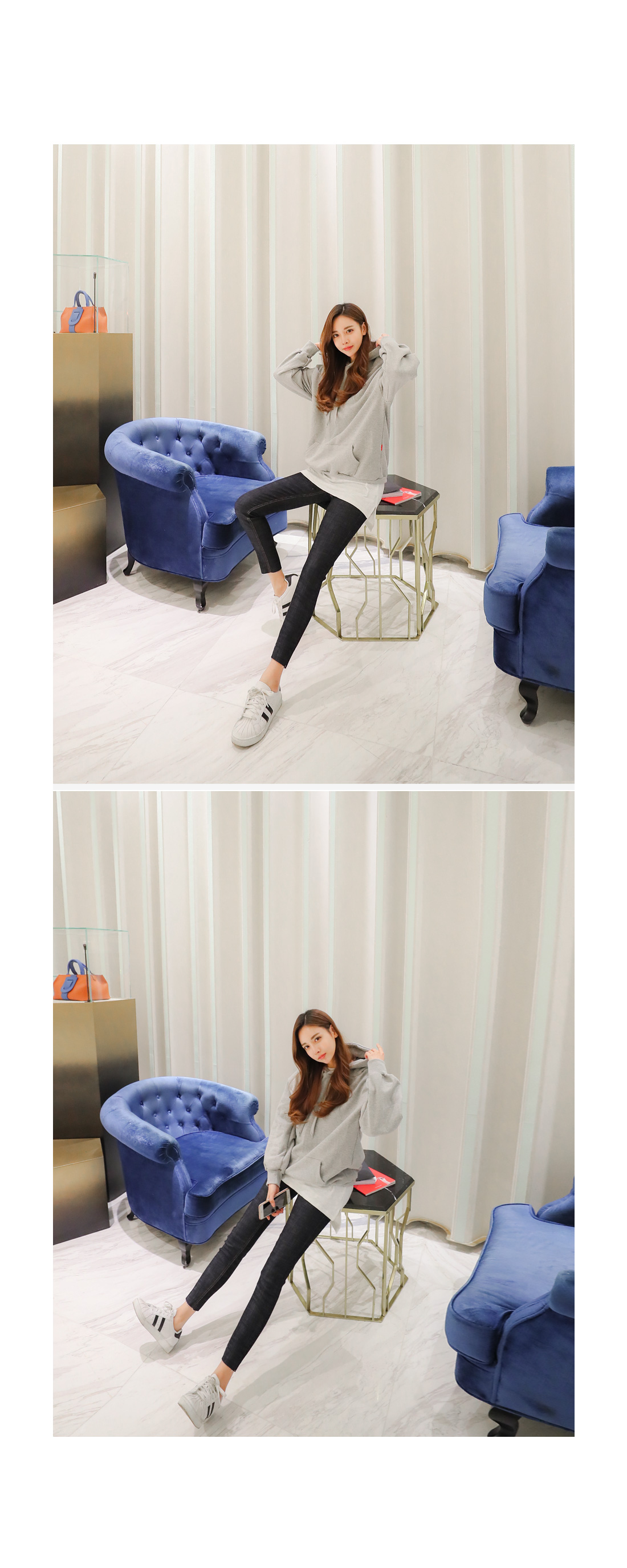 모델이 착용한 컬러는 그레이 입니다.