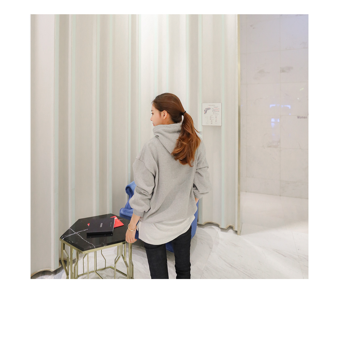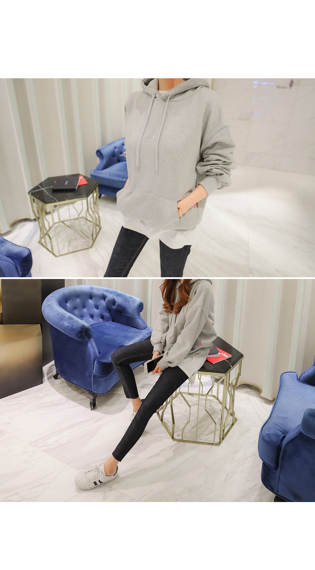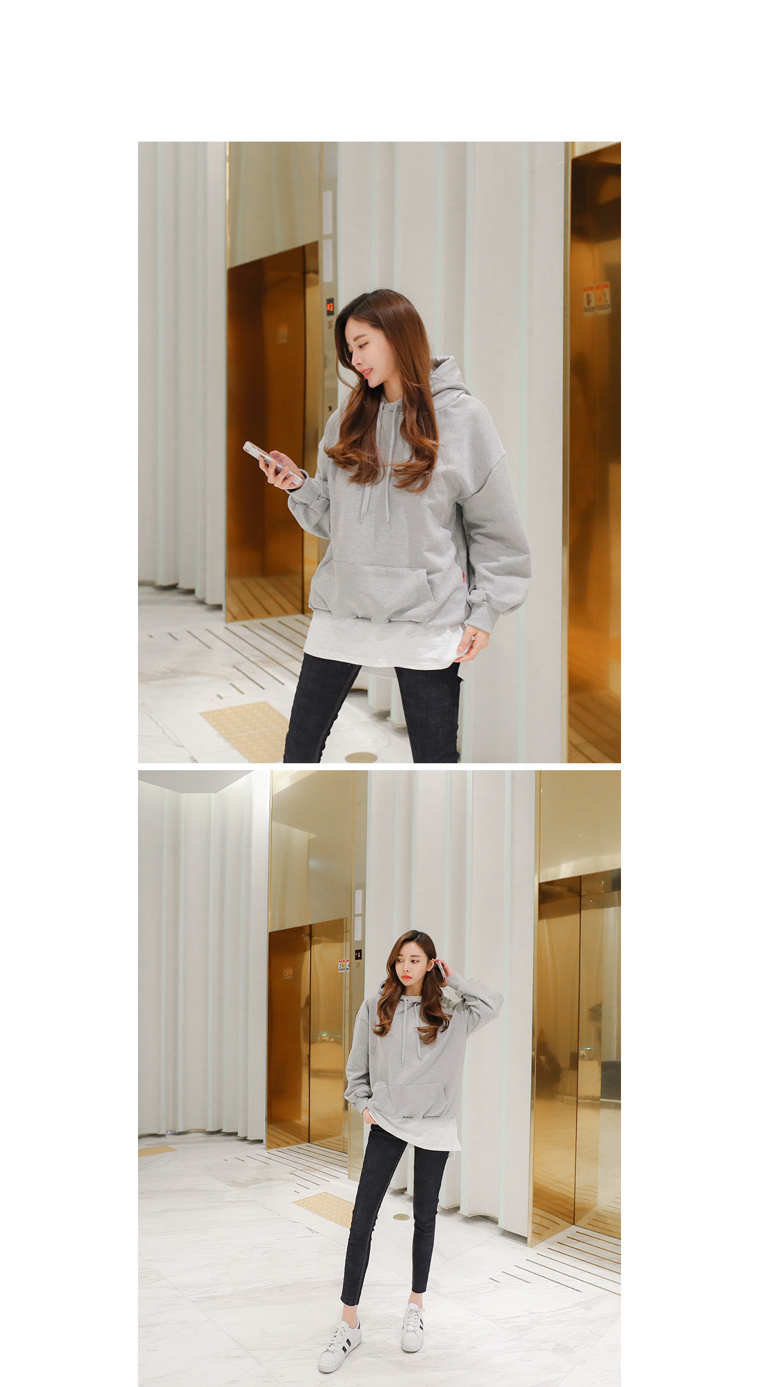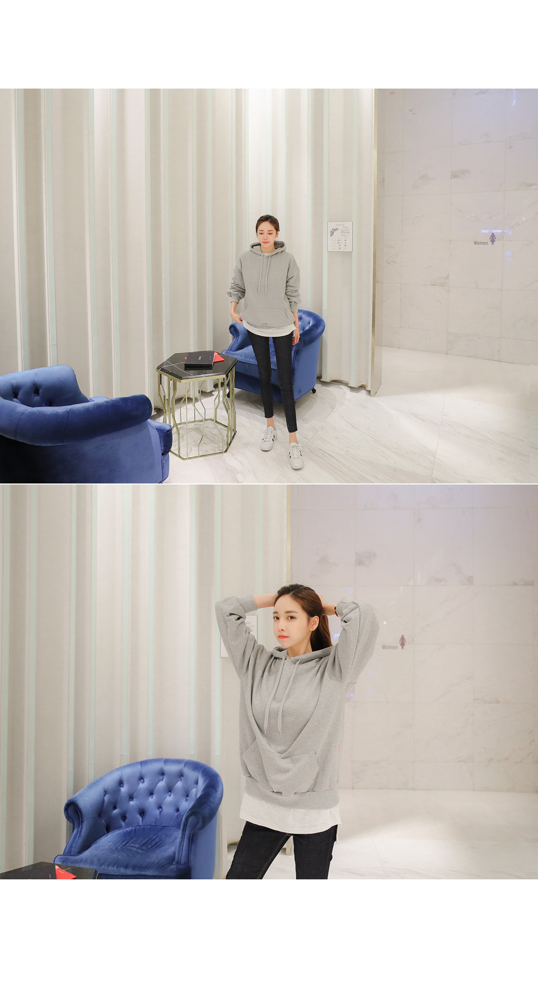 앞캥거루 주머니가 디자인되어 작은 소지품도 넣을수 있어 실용적이에요.