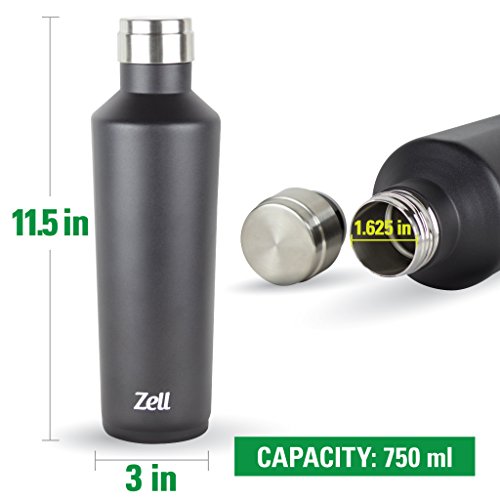Zell Stainless Steel Vacuum Insulated Water Bottle | Keeps Cold 24 hours, Hot 12 hours | Leak-proof Double Walled Wine Shape Thermos | 25 Oz (750 ml)