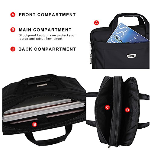 -. Feature : MULTIFUNCTIONAL COMPARTMENT: Organizer briefcase dimensions fixs up to 15.6 inch laptop. Huge-roomy and 5 compartments can provide a separated space for your laptop, tablet, iPad Pro, macbook Pro, power bank, books, A4 files, wallet, pens, keys, clothes and more. / WATER RESISTANT: Optimizing jacquard Oxford Nylon fabric texture clear, feel comfortable, water resistant, wear resistant and durable. / TEXTURE HARDWARE: Choose brand hardware production design restoring ancient ways, steel plating polishing suppression, add bags temperament, durable, quality more resure. / CONVENIENCE: A wide Luggage belt securely attaches briefcase to most rolling luggage. It is really convenient for your happy journey to any where. / COMFORTABLE: Portable thickening Hand design, meticulous reinforced seams, feel comfortable, sturdy and durable. The shoulder with soft thicken pads are reduce the pressure of the shoulder, the design more human.