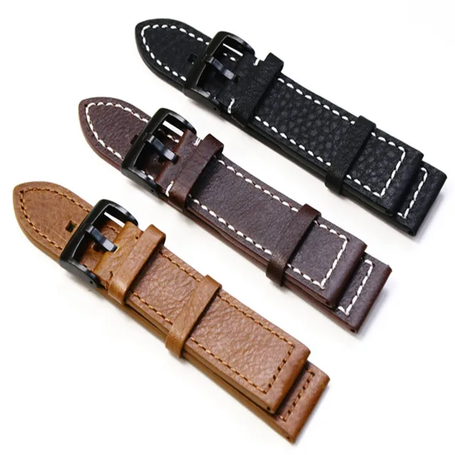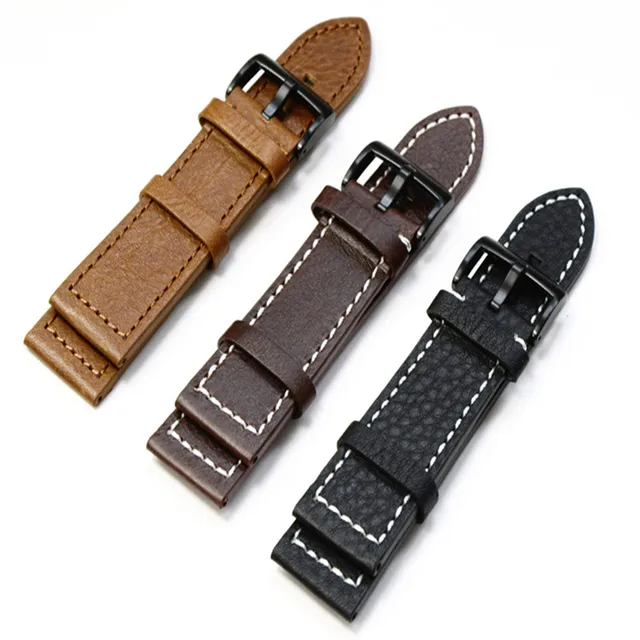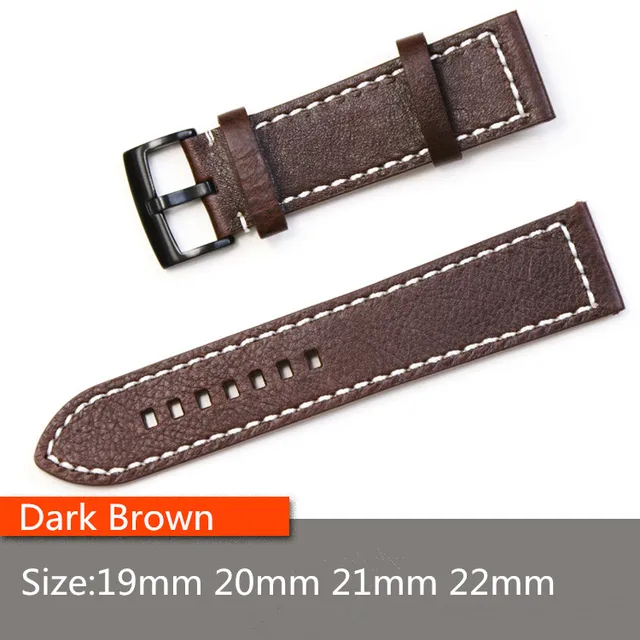 | [해외] 19 미리메터/20 미리메터/21 미리메터/22 미리메터 브라운 블랙 정품 가죽 남성 여성 스트랩 벨트, 복고풍 일반 시계 줄 블랙 버클 |