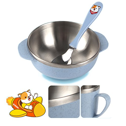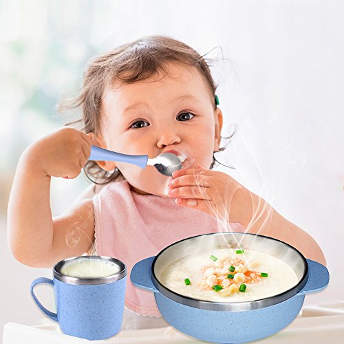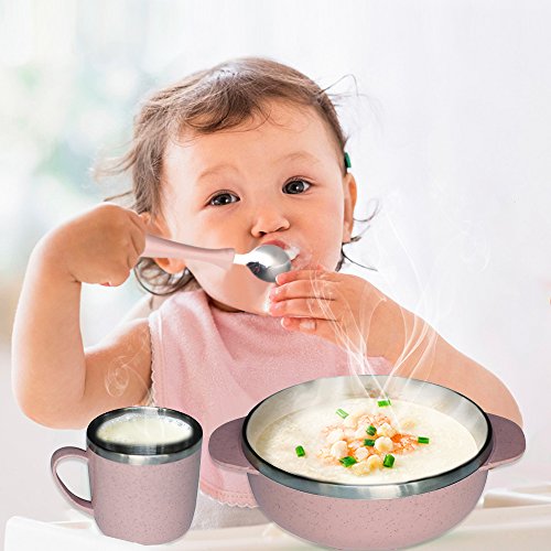 GIVE YOUR BABY A HEALTHY CHOICE - use environmentally friendly natural wheat straw, starch and food safety BPA free external material and stainless steel interior material. Green and healthy, biodegradable, non-toxic and hazardous substances, no heavy metals.