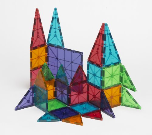 Magna-Tiles® Clear Colors 32 Piece Set includes: 14 Small Squares, 2 Large Squares, 4 Isosceles Triangles, 4 Right Triangles and 8 Equilateral Triangles The original starter set of Magna-Tiles®. These tactile, colorful translucent Magna-Tiles® are sized just right and easy to use, whether creating designs on a flat surface or building in 3-D. Basic shapes are learned through play. Magna-Tiles® develops patterning, shape recognition, building and motor skills. Use them for guided activities or hours of open-ended fun and exploration. They will work well alone or together with Magna-Tiles® Solid Colors to build windows, skylights, etc...Feature