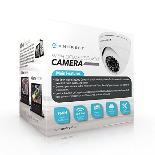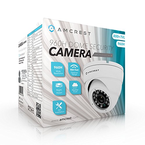 Amcrest AMC960HDC36-W 800+ TVL Dome Weatherproof IP66 Camera with 65' IR LED Night Vision (White),Power supply and coaxial video cable are not included