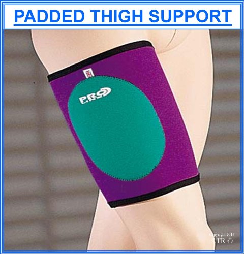 Padded Thigh Support Features: ? Comfort and good compression . ? Slim design that can be worn under clothing. ? Designed for all activities. ? Slip on design with a three dimensional shape to follow the contours of the leg. ? Double thickness neoprene pad for extra protection.