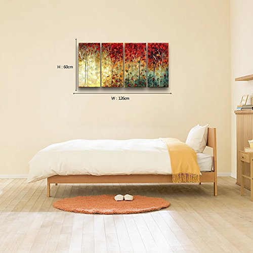 - Feature : 100% hand painted by professional artists with years of oil painting experiences. Authentic texture, which you can see clearly in the picture. / Gallery wrapped and stretched with durable wooden frame on the back. The surface is covered with clear plastic film layer to protect the painting. Necessary accessories for hanging are packed together with your painting. Easy to hang. Packed in Carton Box with bubble in it. / Product size(inch):11.8*23.6*4pcs / Stored in Amazon warehouse, you will get it within 4 days when you order it. / Why Hesitating? Make your house more warming and beautiful! It is also an ideal gift for your friends in Christmas/New Year and Birthday!