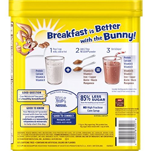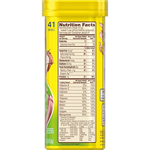 Nestle Nesquick No Sugar Added Chocolate Powder 16 Oz (Pack of 2)