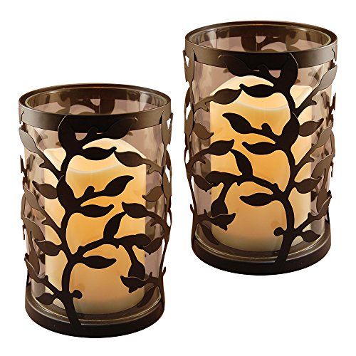 -. Title : LumaBase 93002 2 Count Round Vine Metal Lanterns with LED Candles, Warm Black