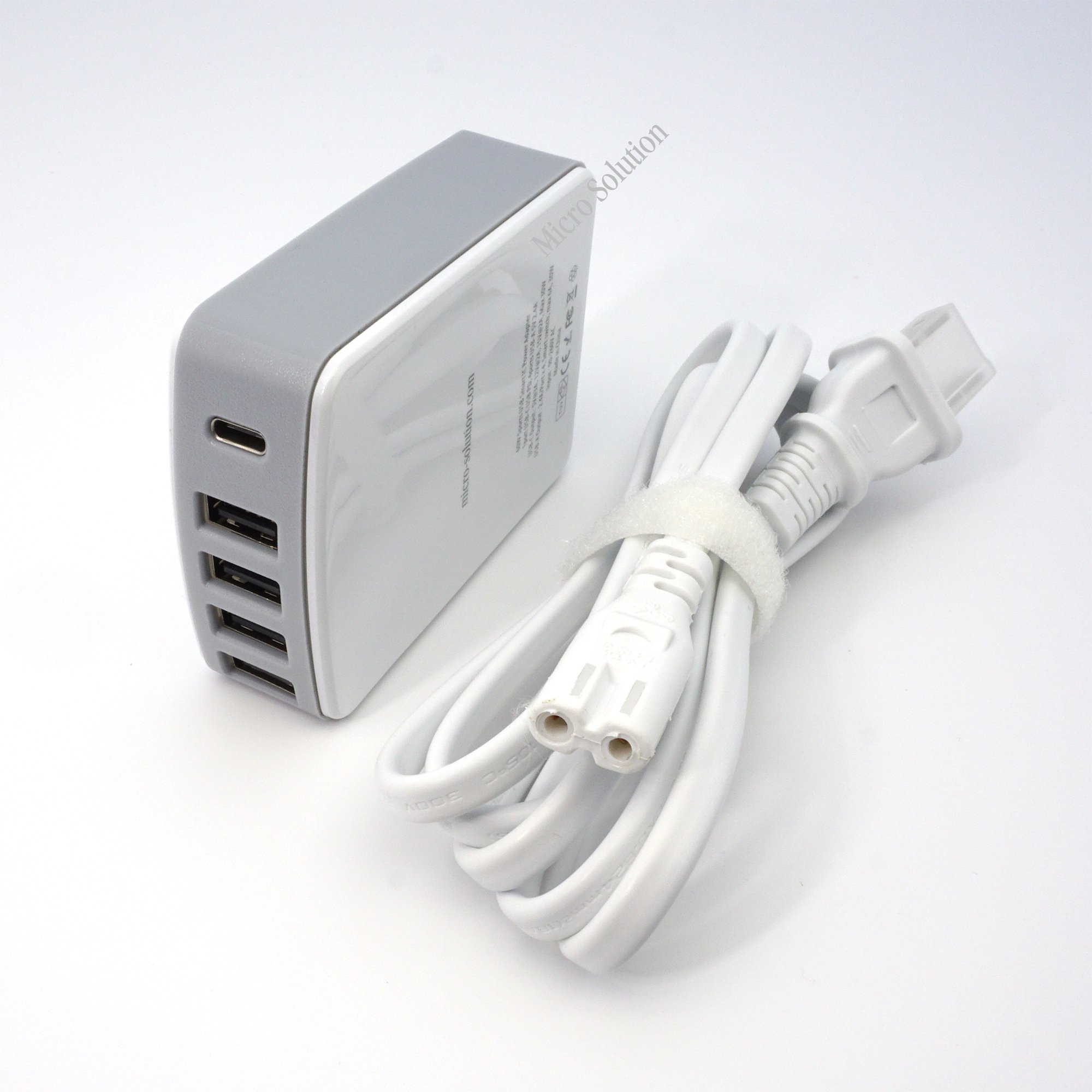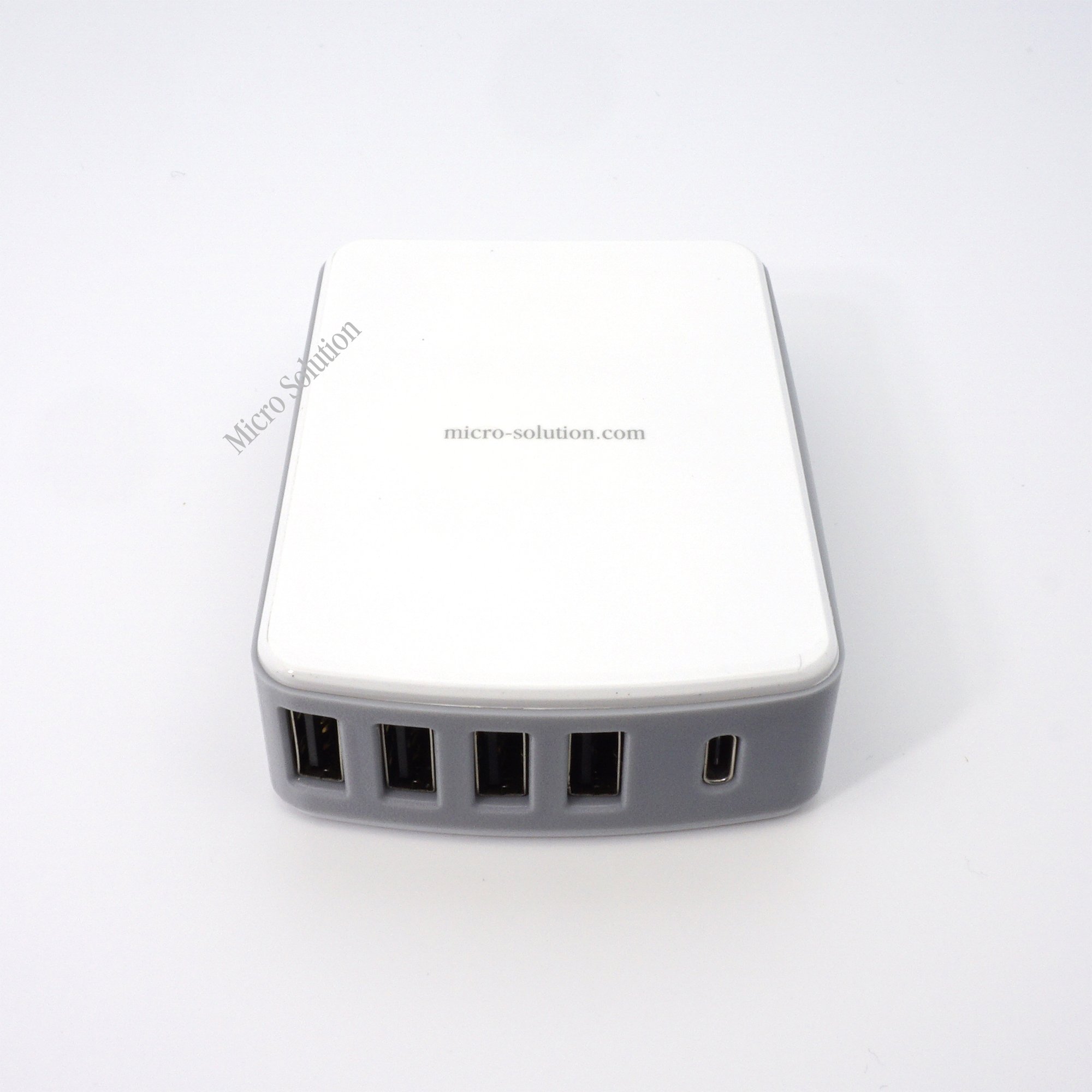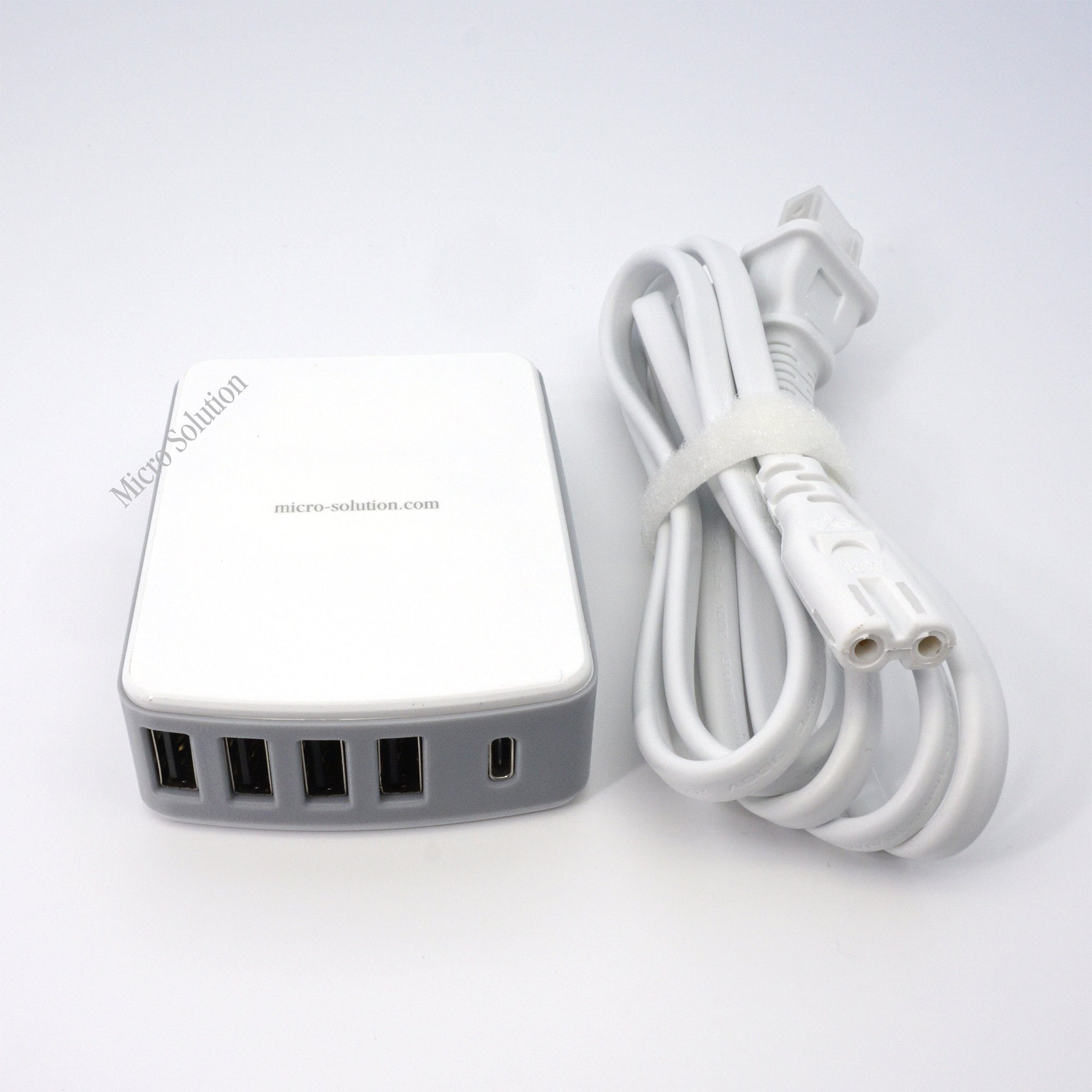 □ Compact high-performance Input: AC 90-260V 5 ports power adapter: 1 x USB-C, 4 x USB / Total Power Rate: 60 W USB-C Power Delivery Output: 5 V @ 3A, 12 V @ 2A, 15 V @ 2A, max